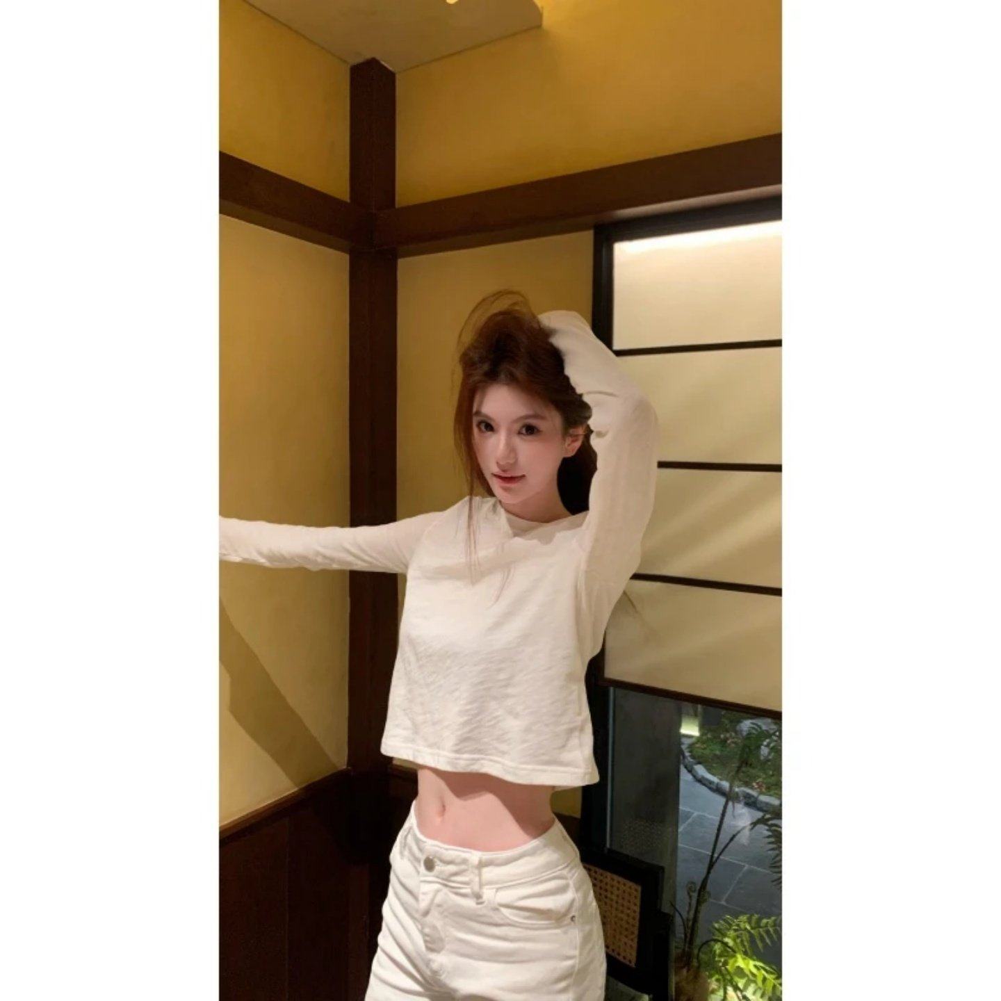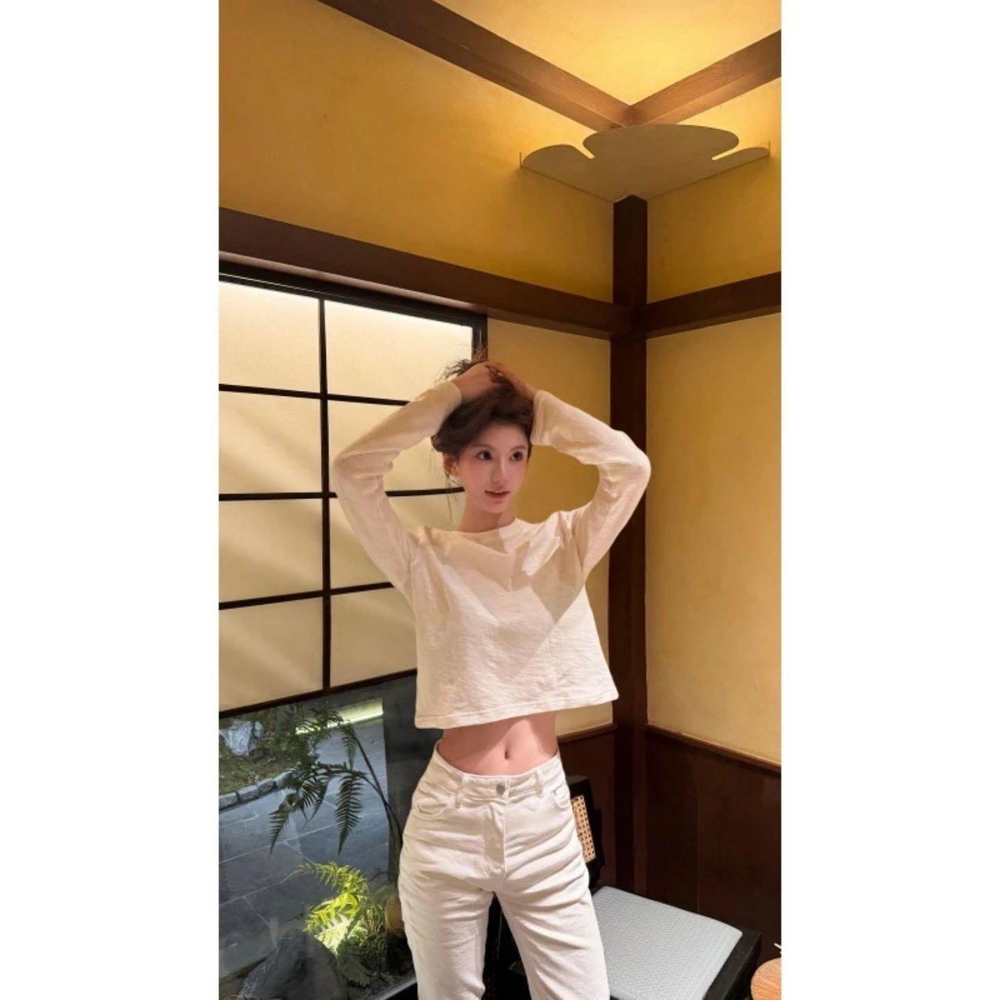 2026巨好看搭配一整套极简纯色百搭短款长袖上衣显瘦高腰直筒裤