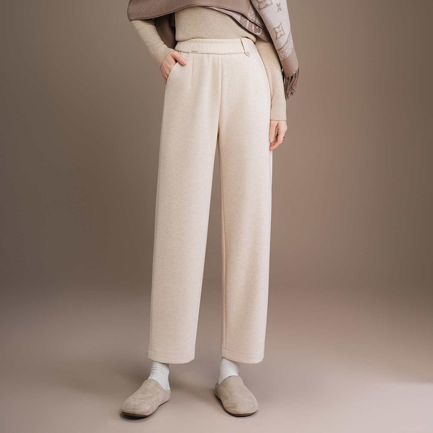 首页> 女装> 羊毛呢九分小直筒裤女秋冬2025新款松紧腰显瘦通勤百搭休闲哈伦裤