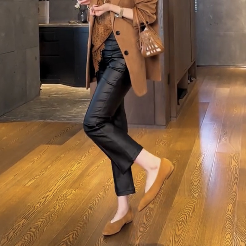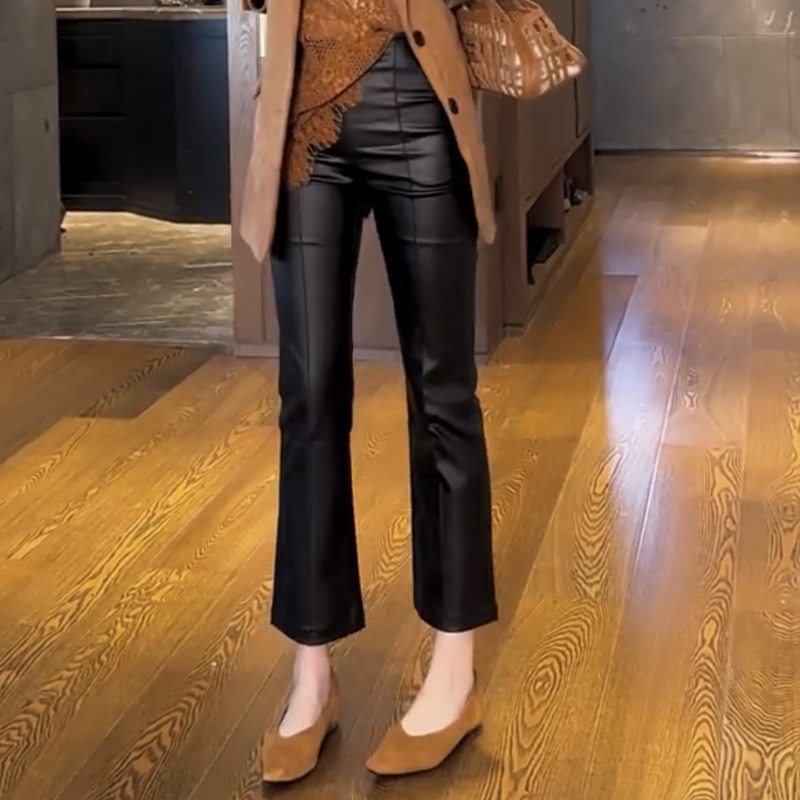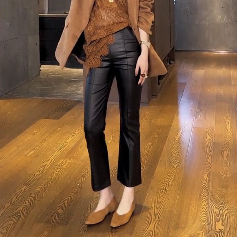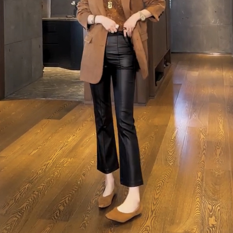 2025年秋冬新款微喇叭涂层皮裤女时尚宽松百搭显瘦洋气九分休闲裤