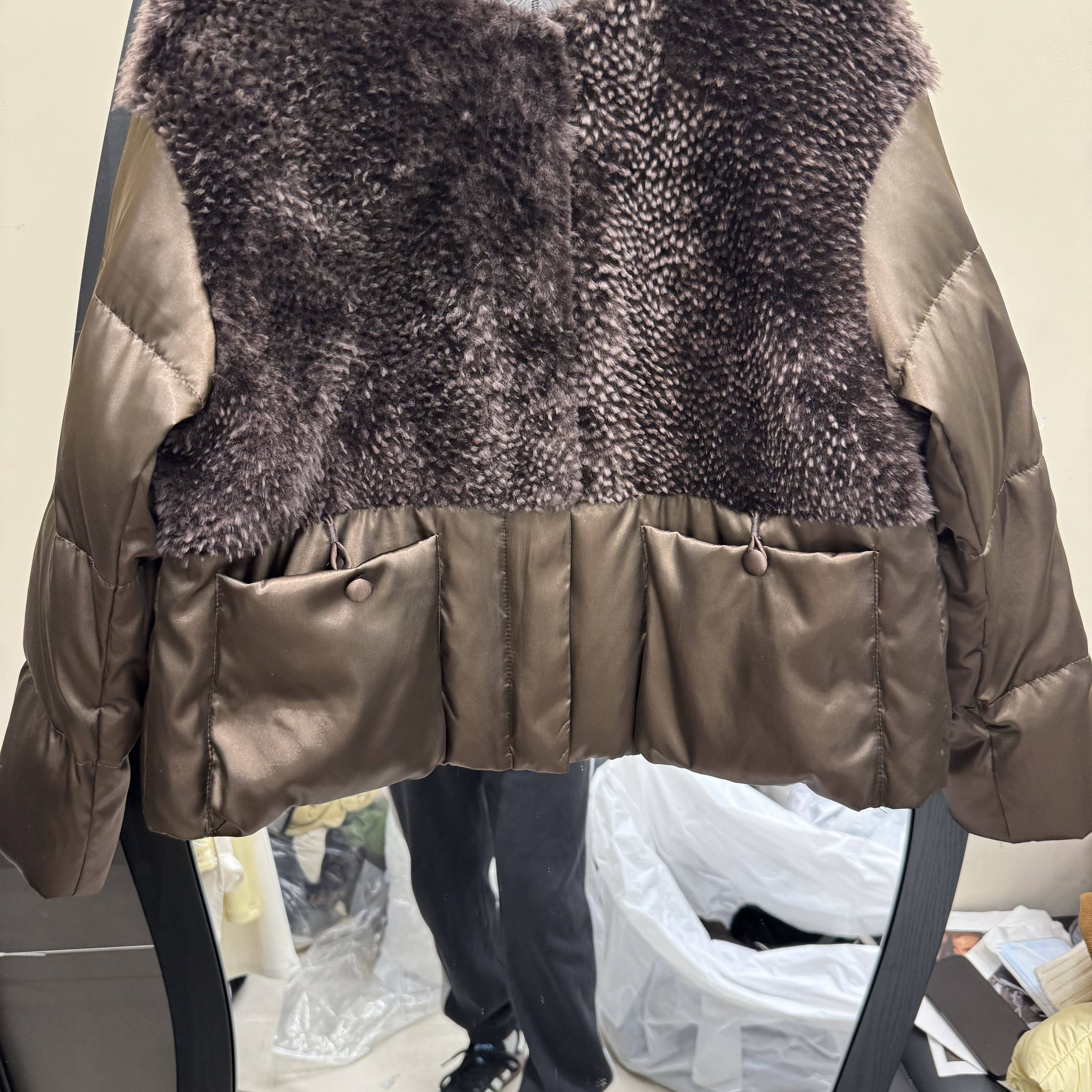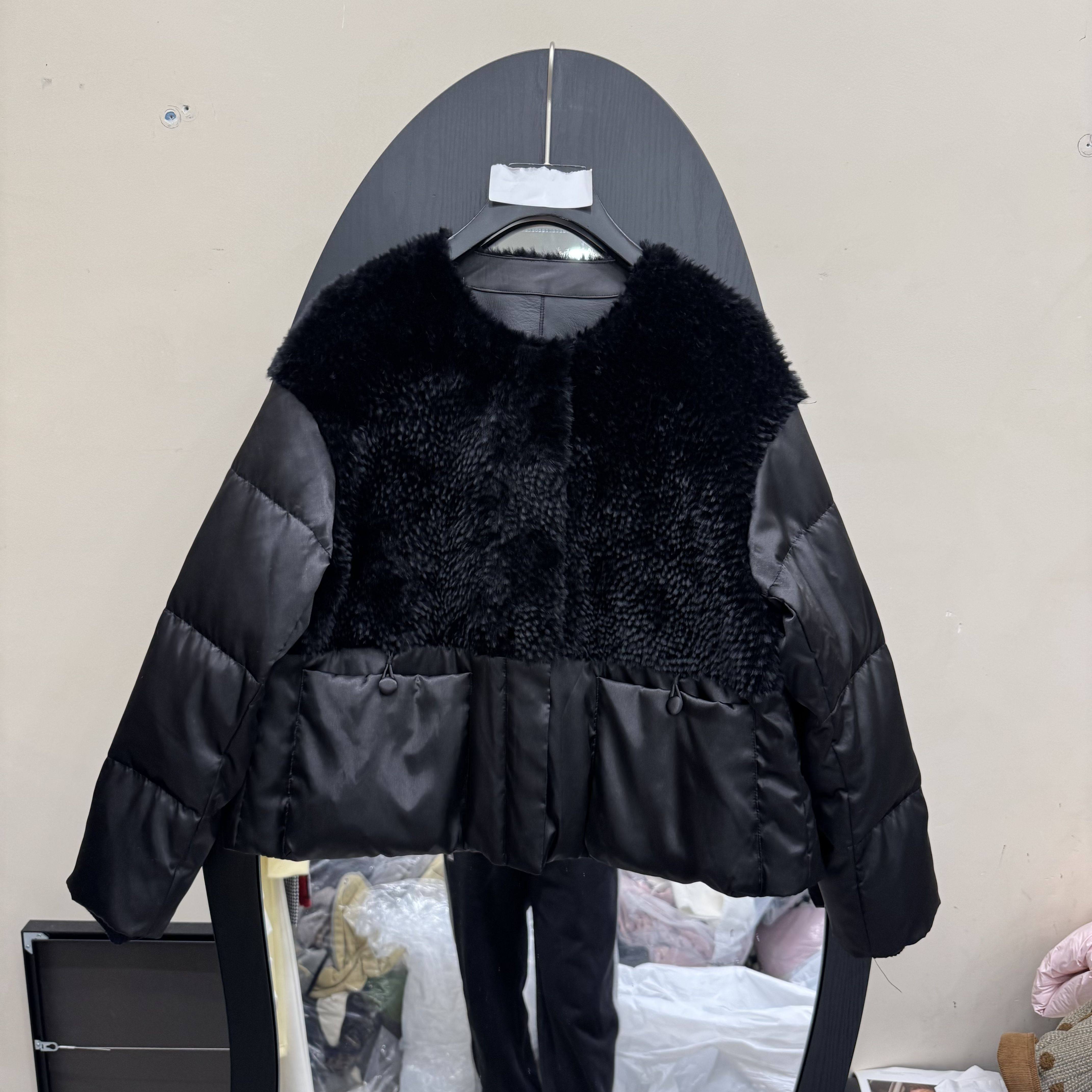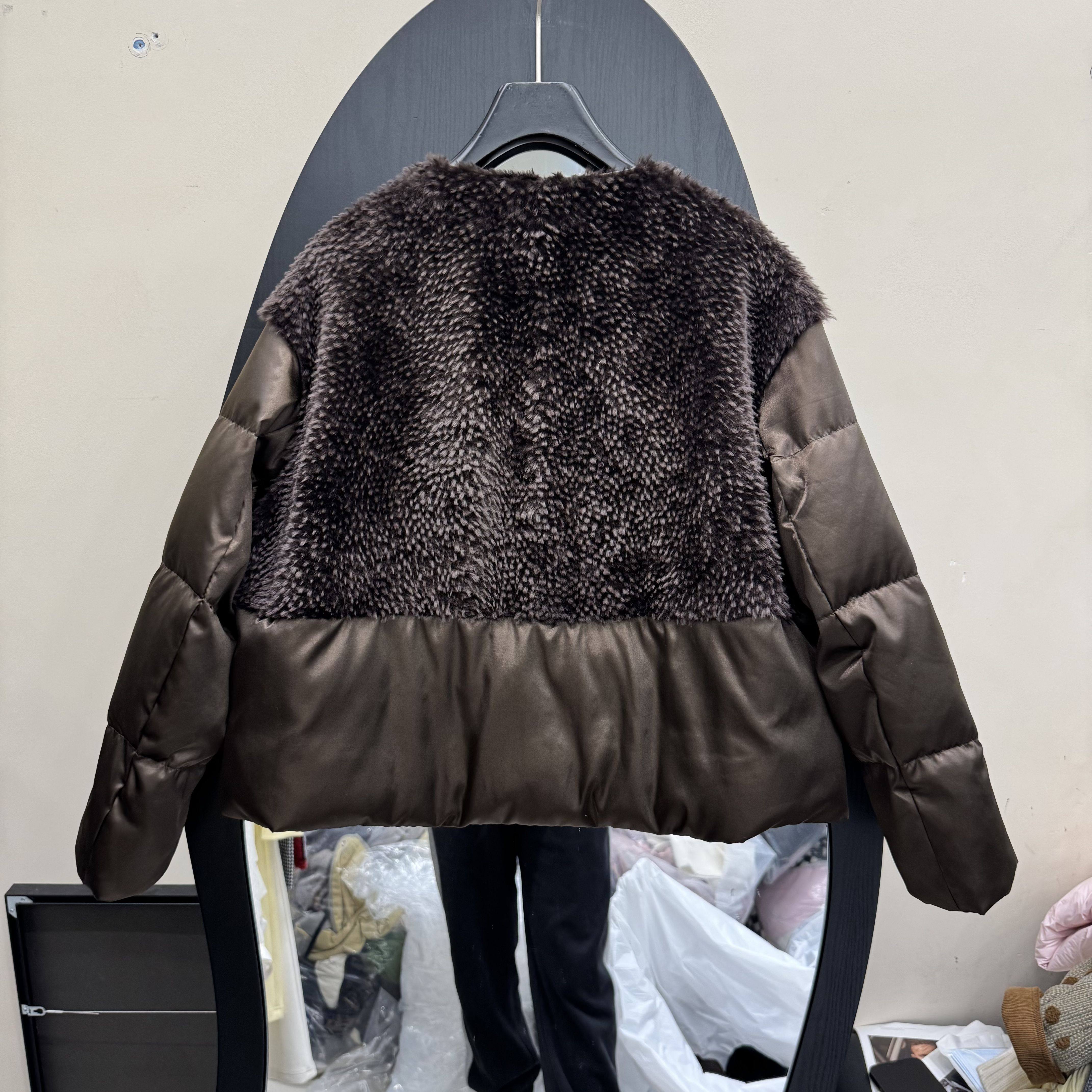 欧洲站2025冬新款拼接羊羔毛短款羽绒服女宽松显瘦鹅绒外套88250