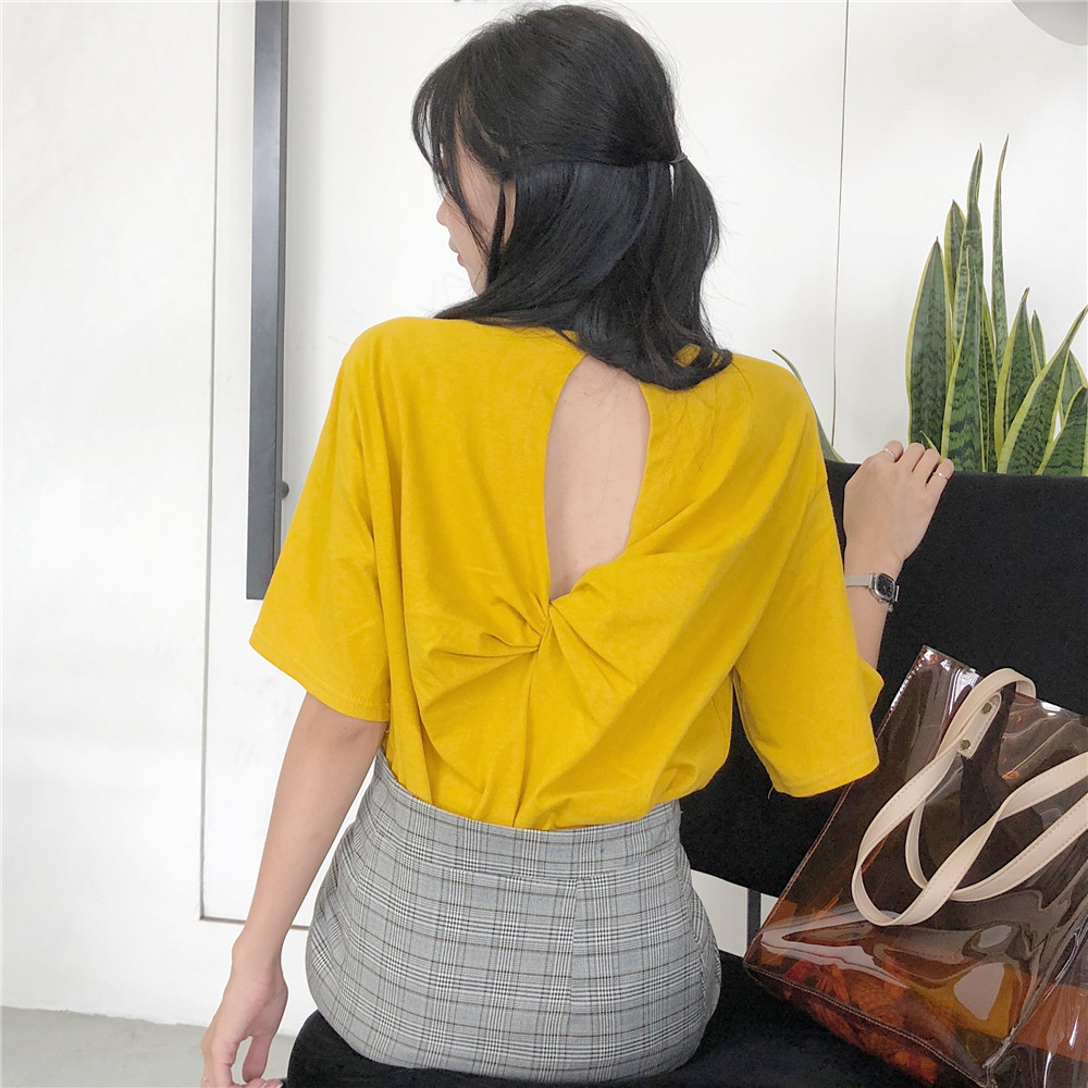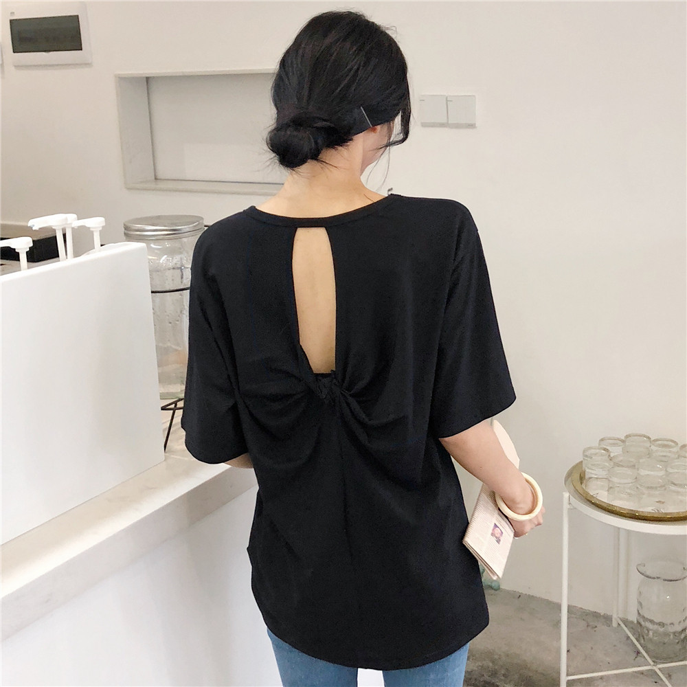 夏季新款女装半袖体恤后背镂空个性潮流性感原宿中长款短袖T恤女
