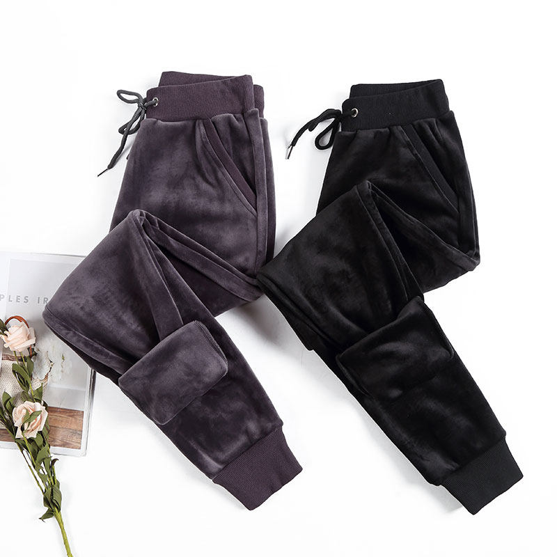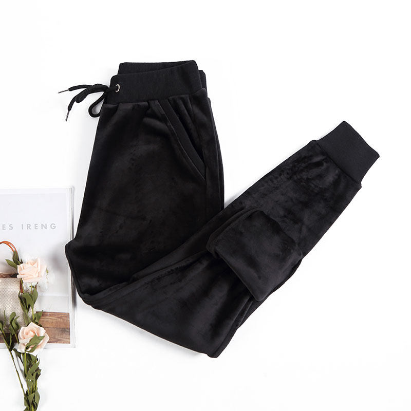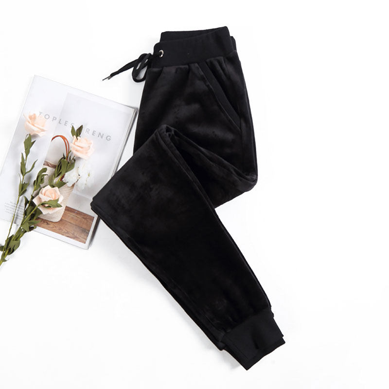 加长金丝绒运动裤女高个子女士休闲大码胖mm秋冬加绒卫裤子双面绒