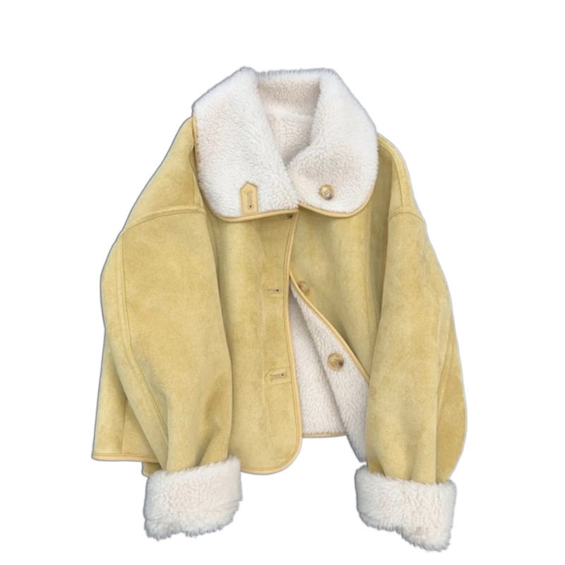 冬季超好看麂皮绒外套女羊羔绒翻领加厚皮毛一体小个子百搭减代发