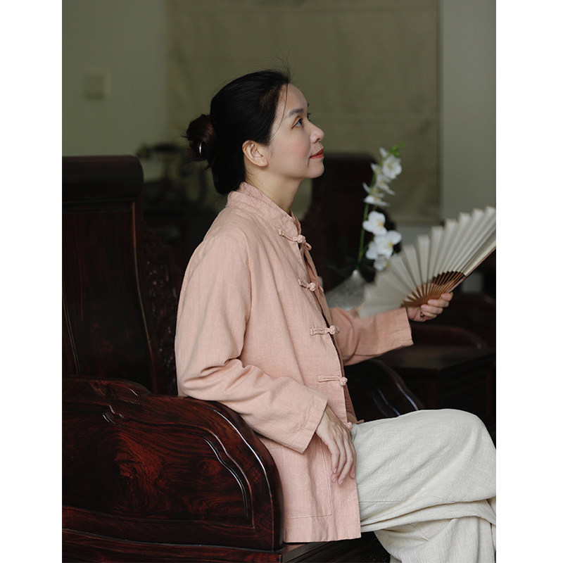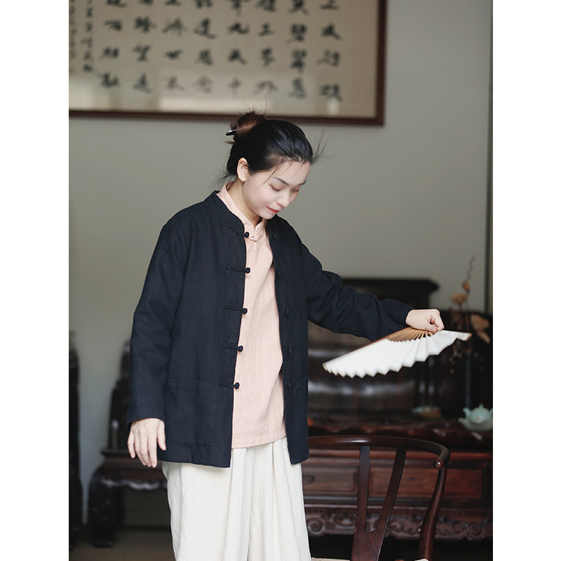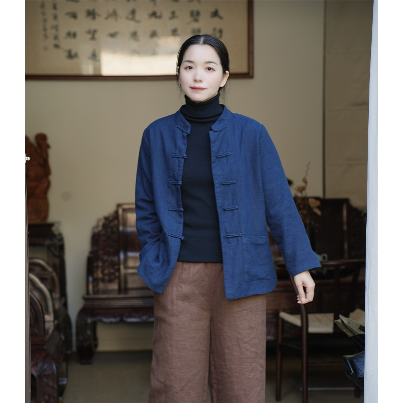 如素慢衣新款复古文艺新中式苎麻棉立领盘扣短外套35022