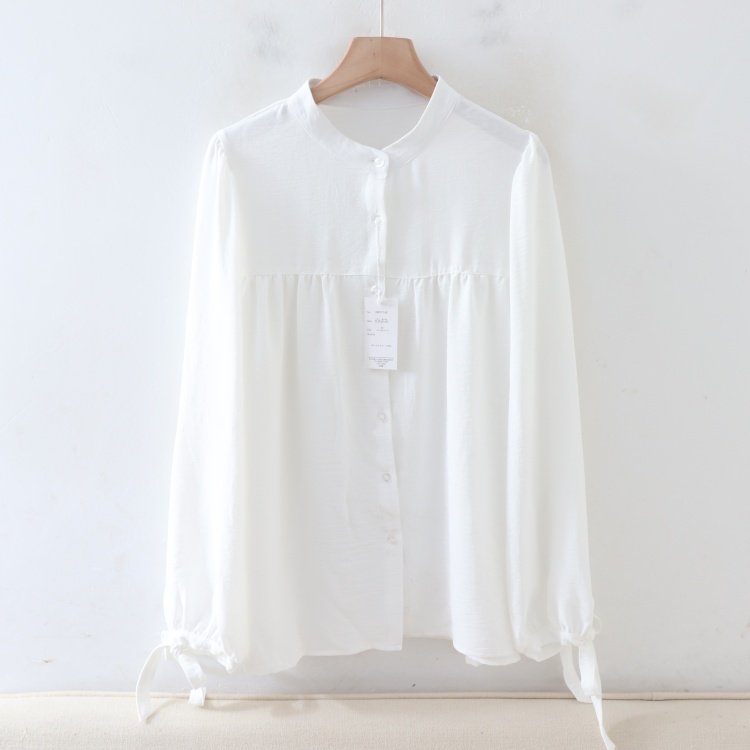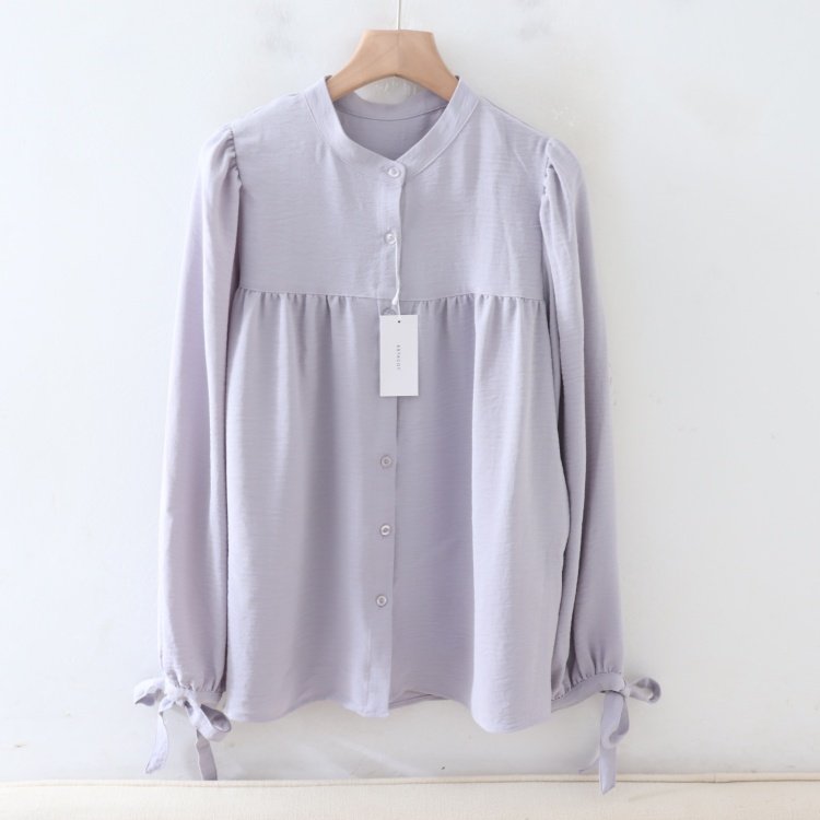 首页> 女装> B06045日单新款客供料圆领单排扣宽松显瘦女气质纯色袖系带衬衫