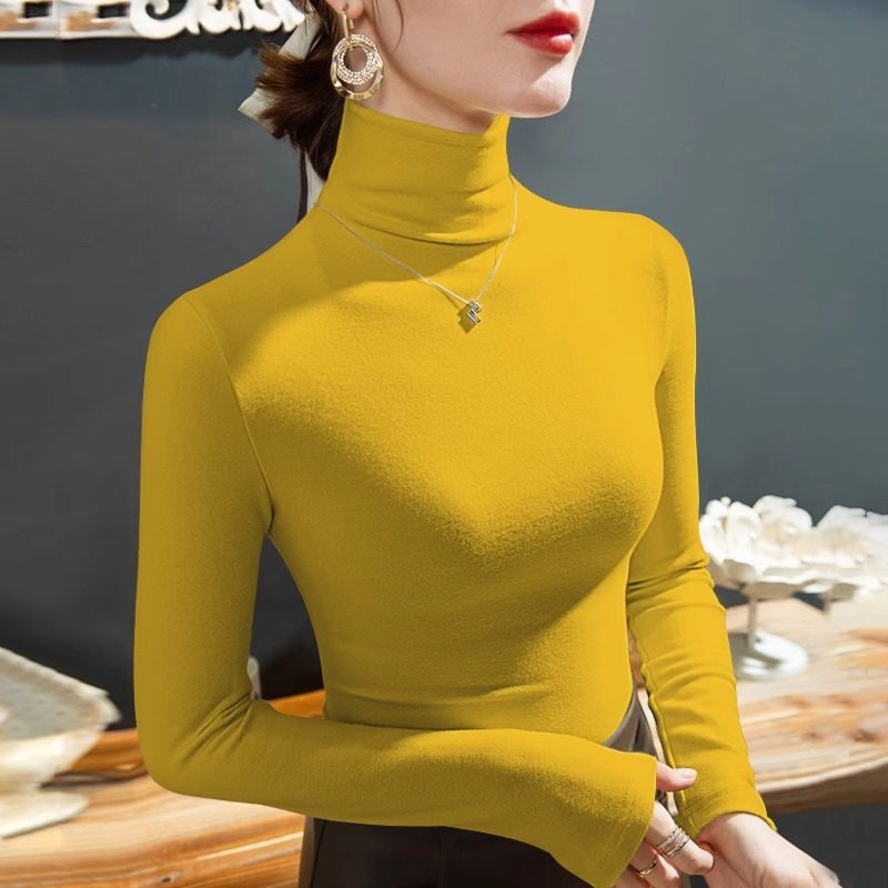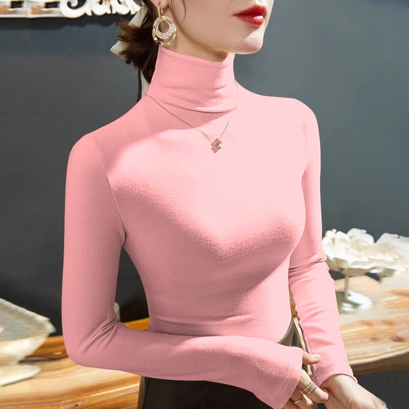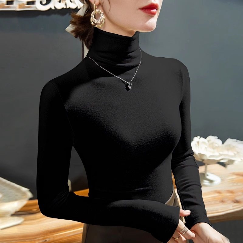 2025秋冬新款双面德绒高领打底衫女加厚磨毛保暖内搭长袖T恤上衣