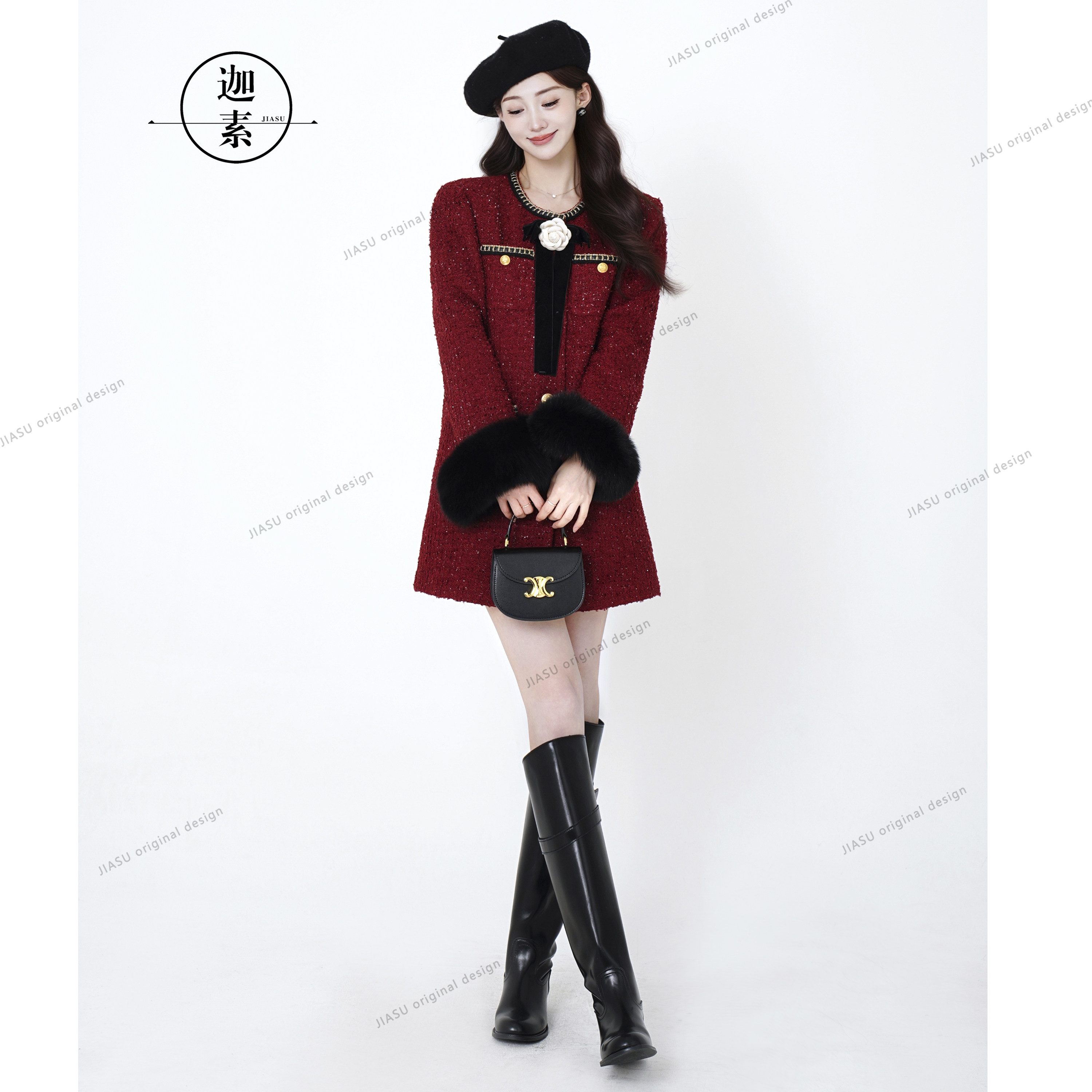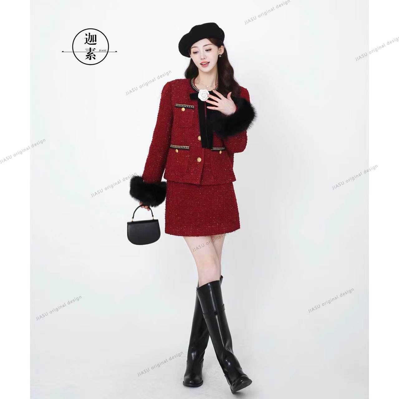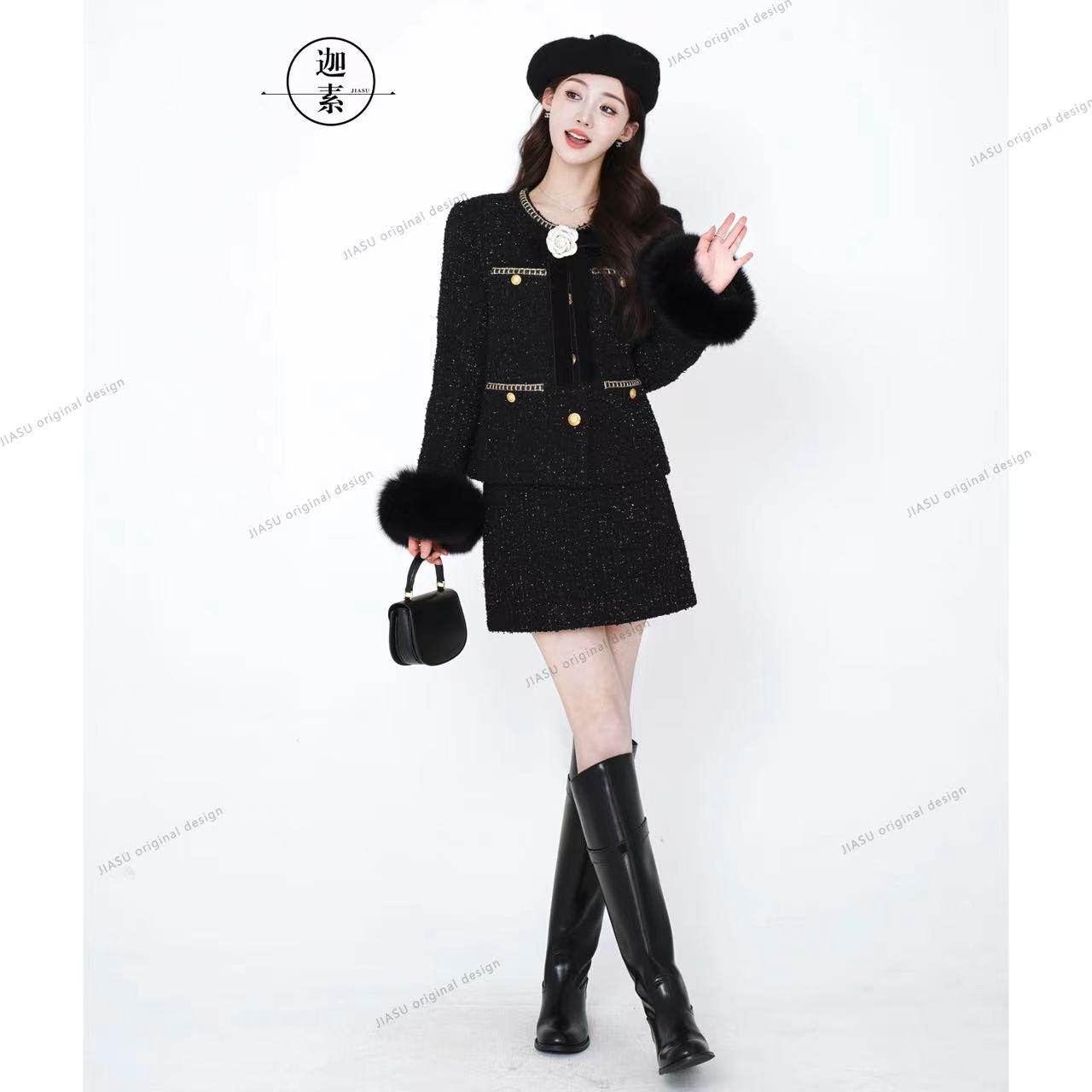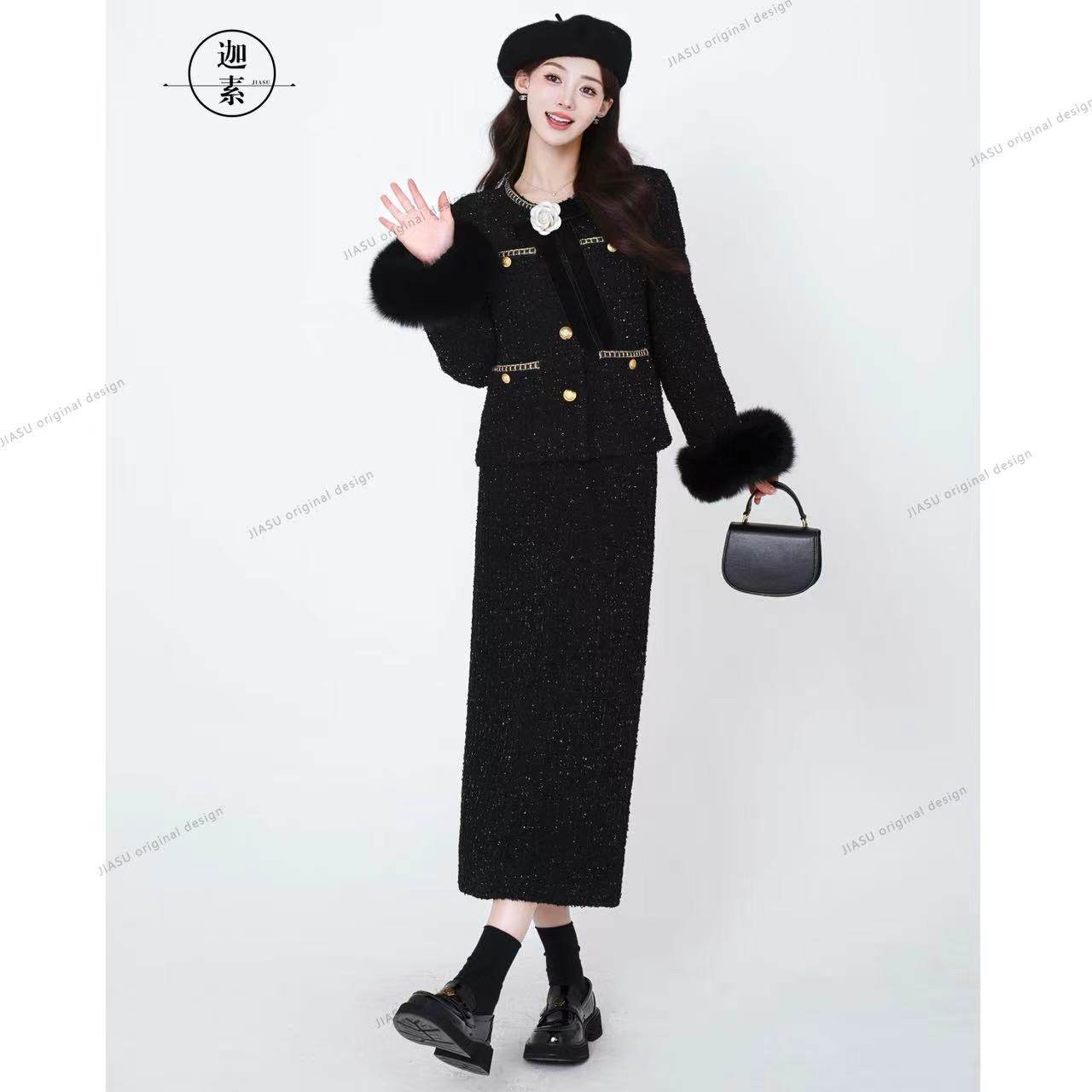 JIASU 【沉醉萨曼莎】2025秋冬新款时尚气质小香风羽绒套装S584