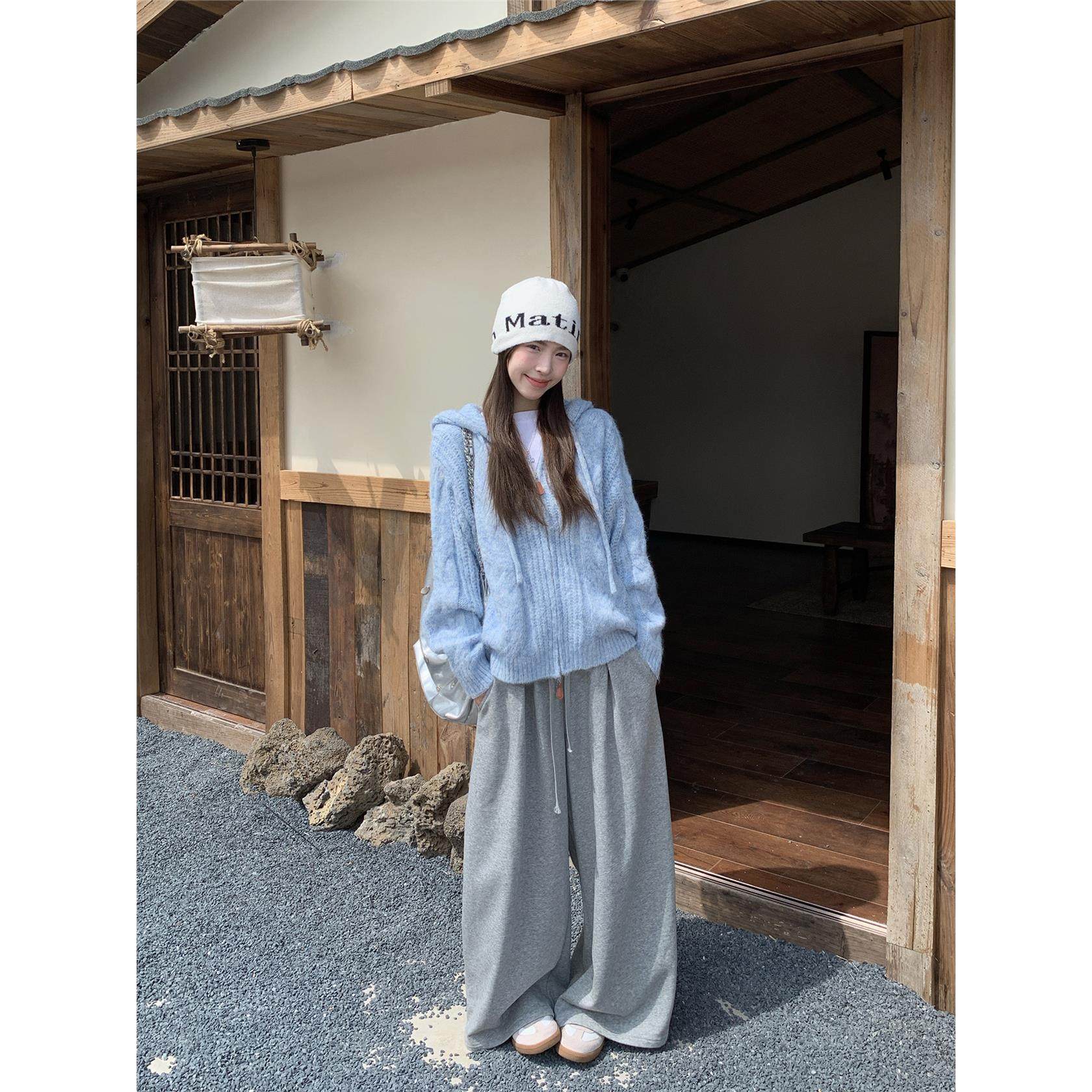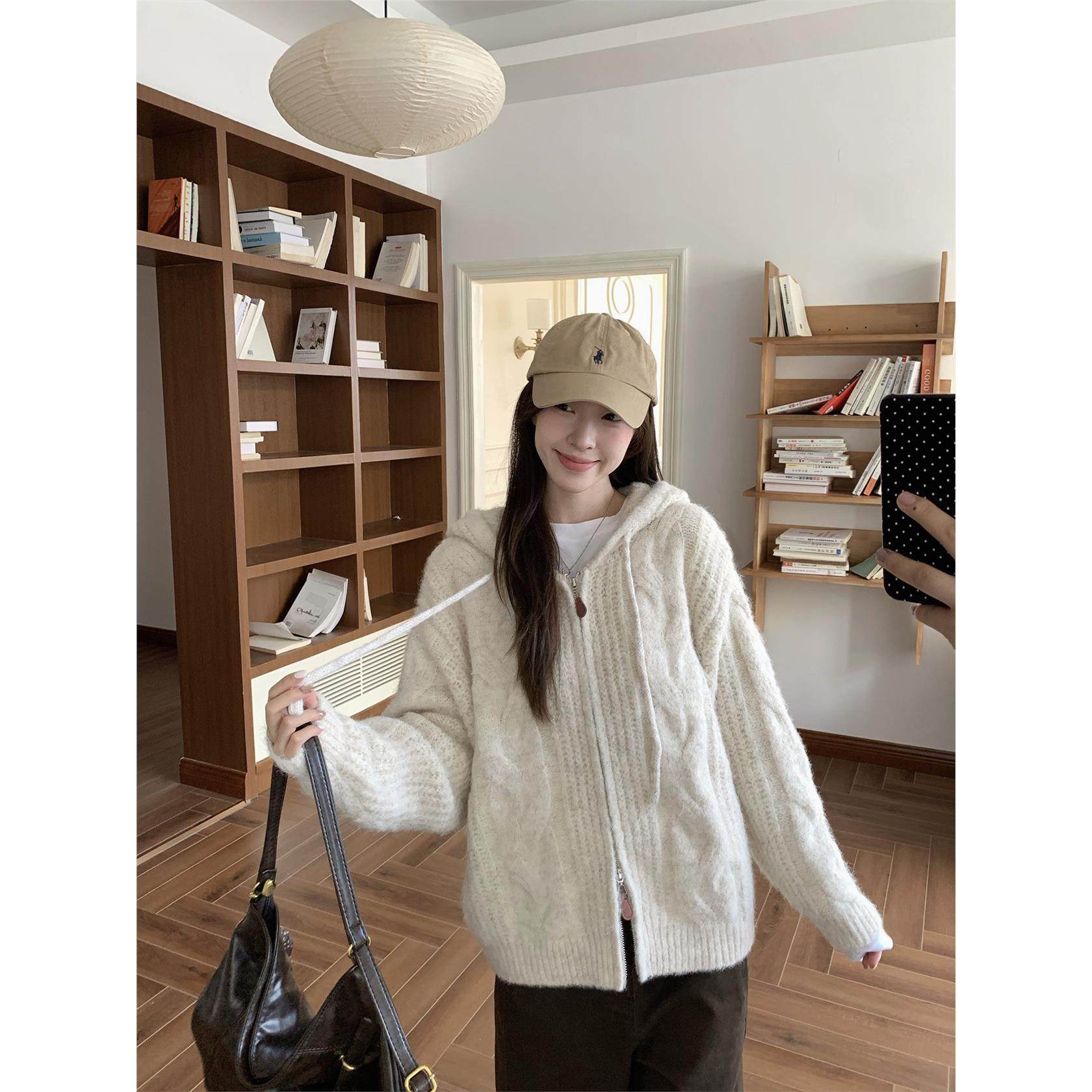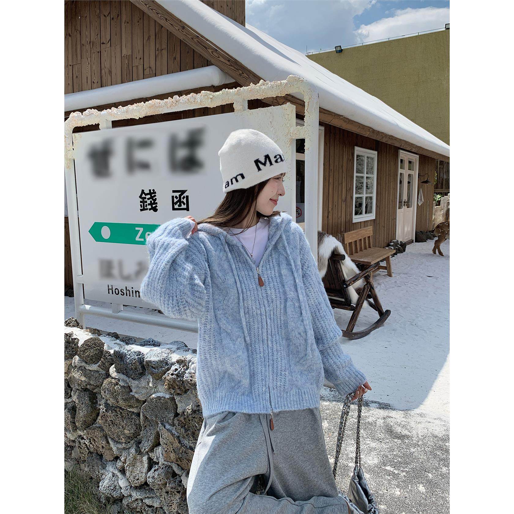 morning bloom软糯加厚拉炼毛衣女2025新款连帽针织毛线外套上衣