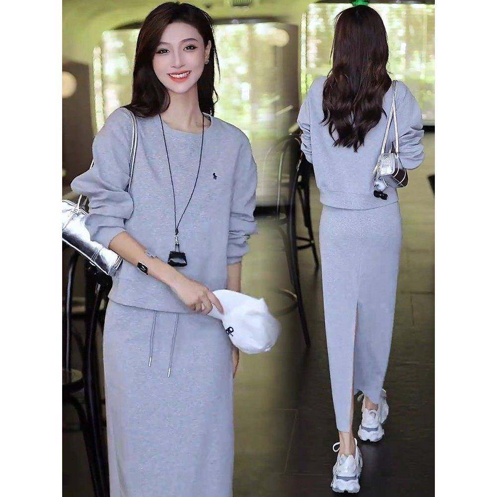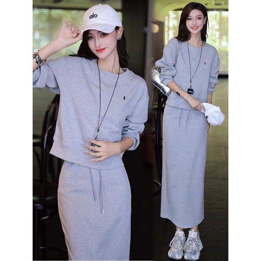 香港代购时尚休闲套装裙女秋季新款时髦显瘦圆领卫衣半身裙两件套