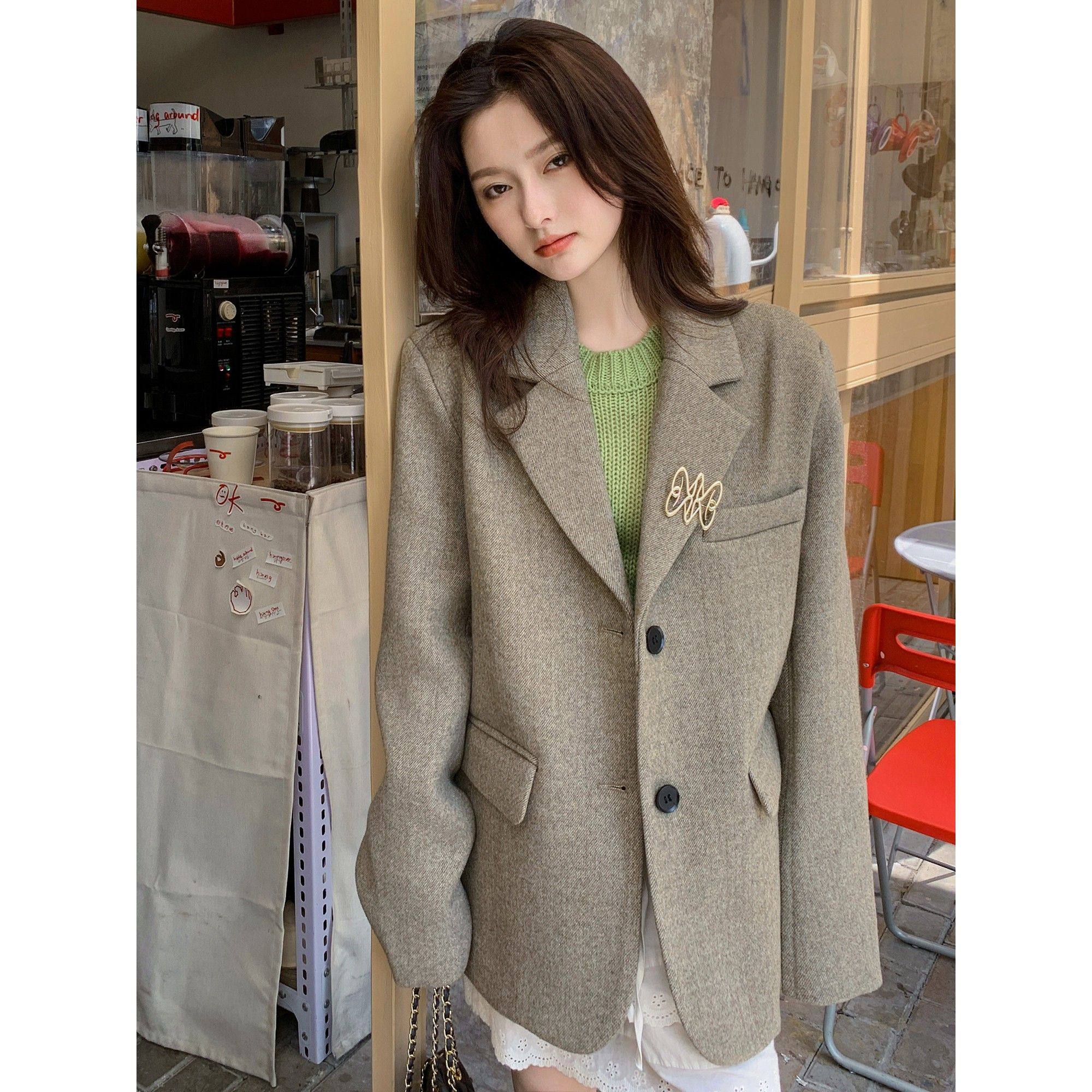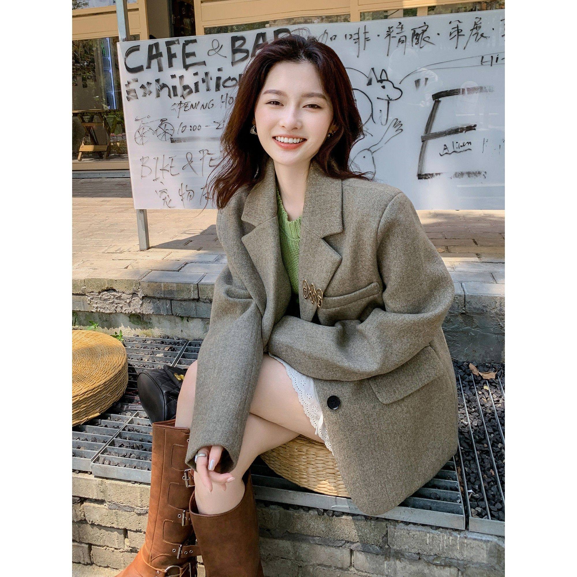 灰色羊毛呢小西装外套女2025秋冬季韩系短款宽松呢子小个子大衣
