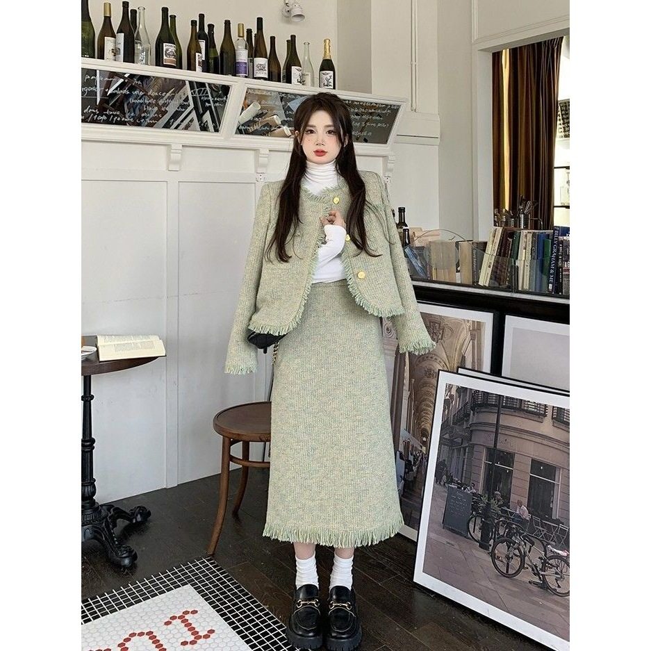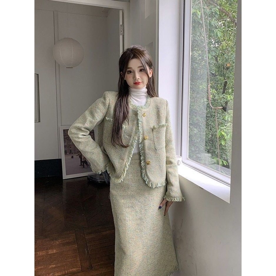 气质名媛小香风套装裙春春秋新款高级感温柔韩剧外套半身裙两件套