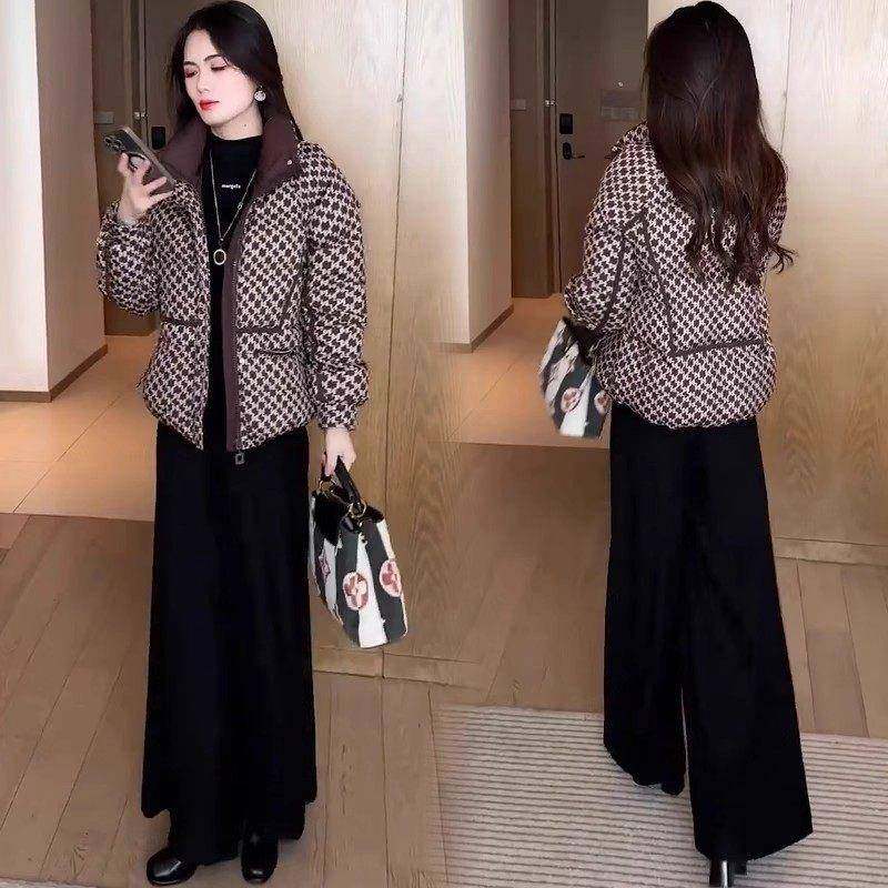 首页> 女装> 香港代购妈妈装短款羽绒棉服女冬季新款洋气质保暖千鸟格棉衣外套