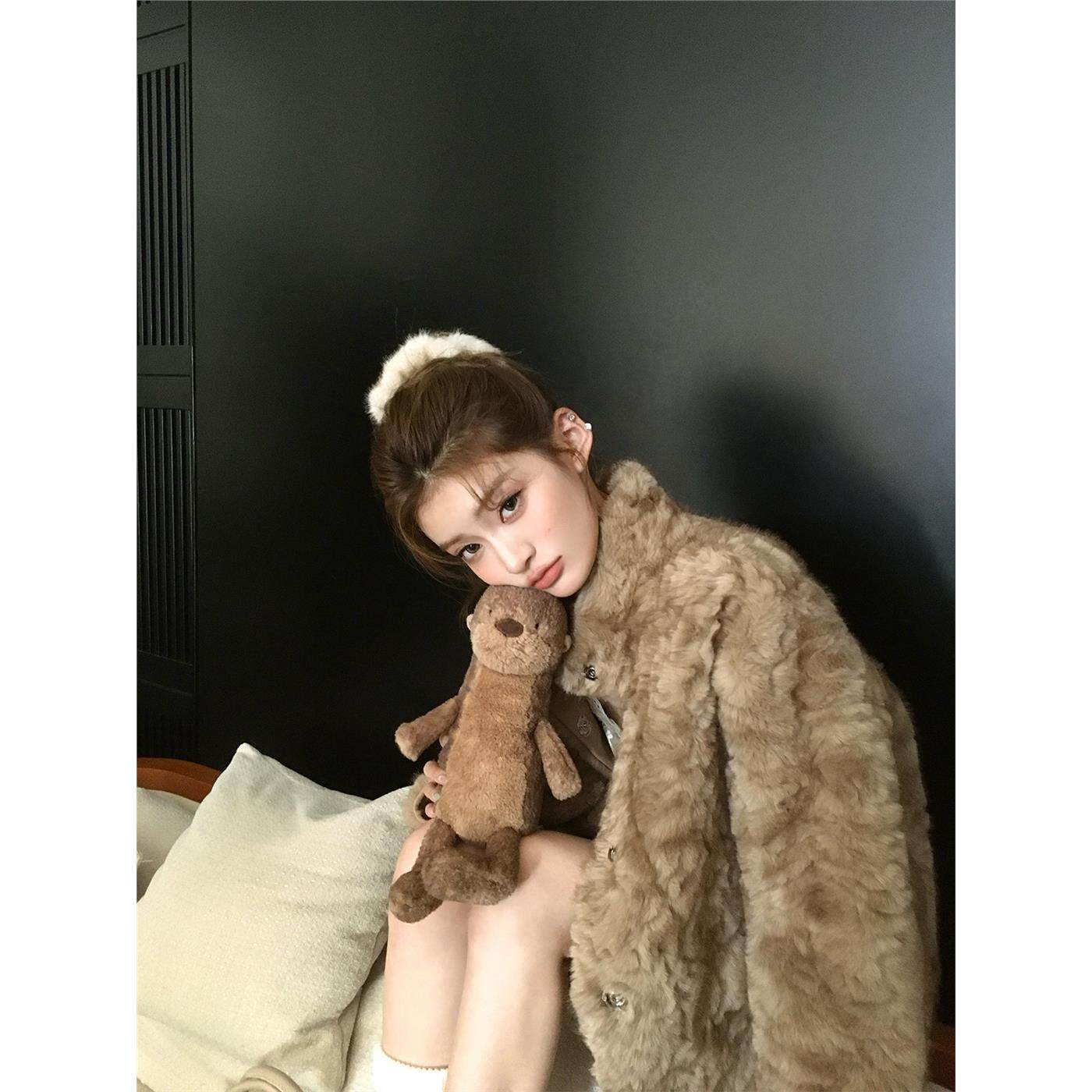 小熊心事立领染尖花狐貂皮毛一体女冬季慵懒风休闲环保皮草外套