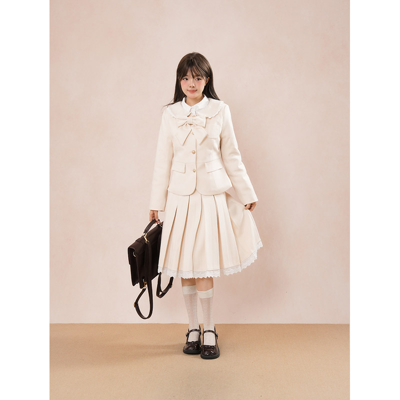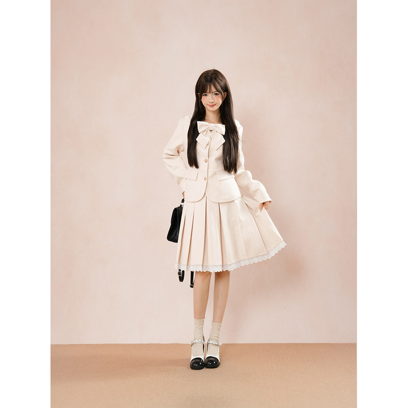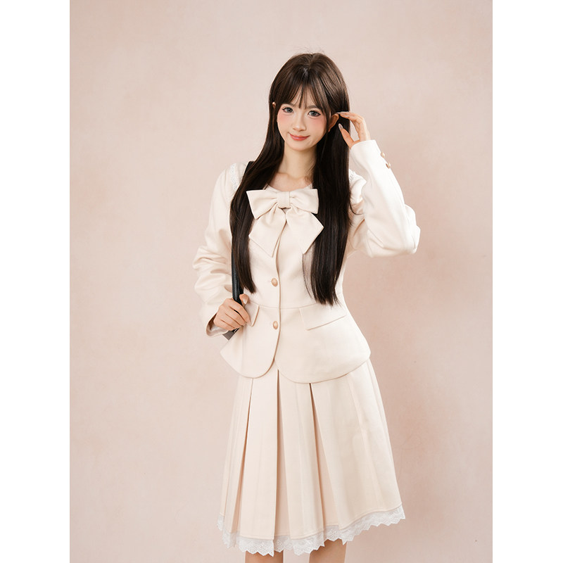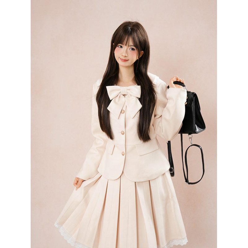 巧雾迷蒙 气质西装蝴蝶结外套百褶半身裙学院套装两件套秋季新款