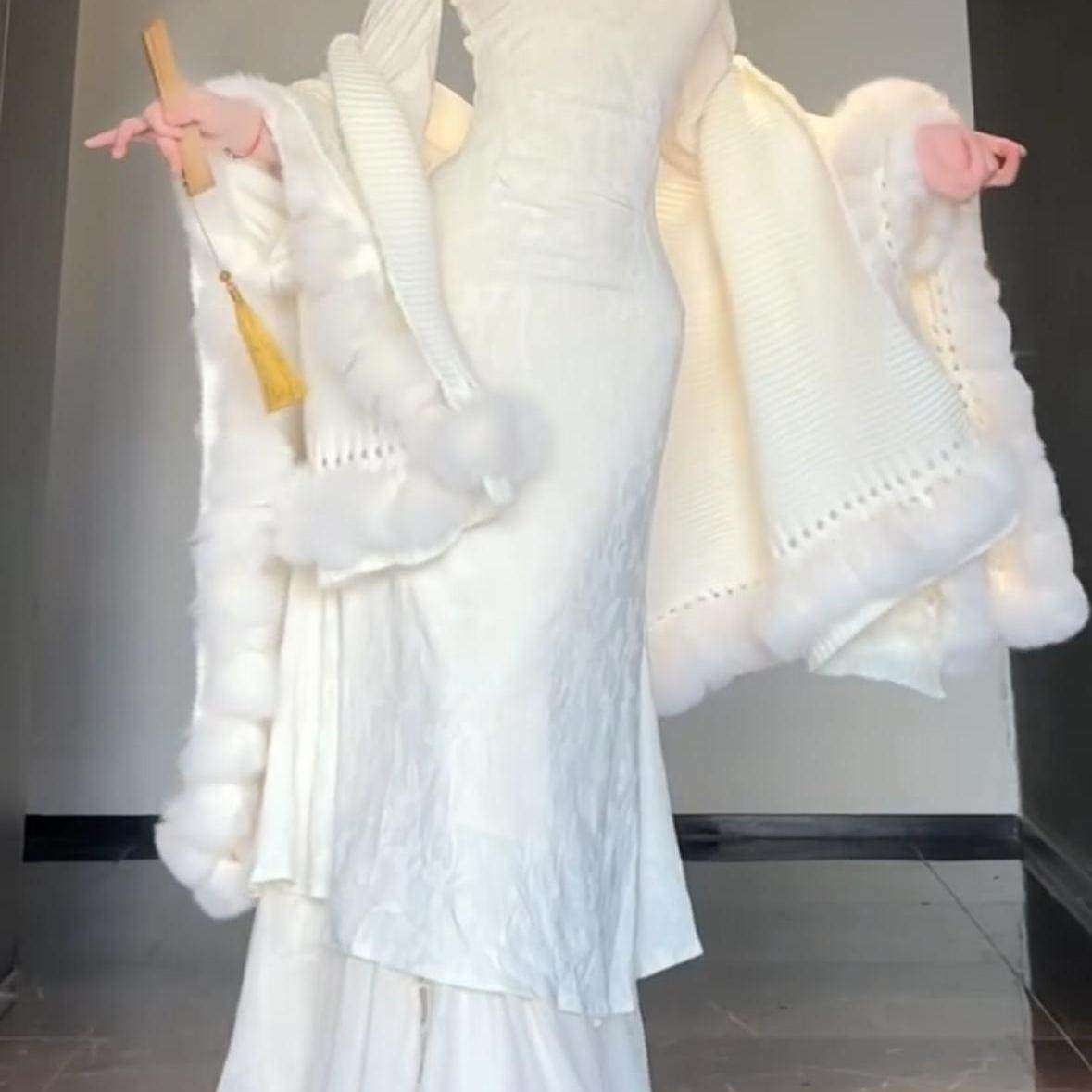慵懒麻花针织环保毛毛球披肩外套秋冬2025新款斗篷披肩毛衣外套女