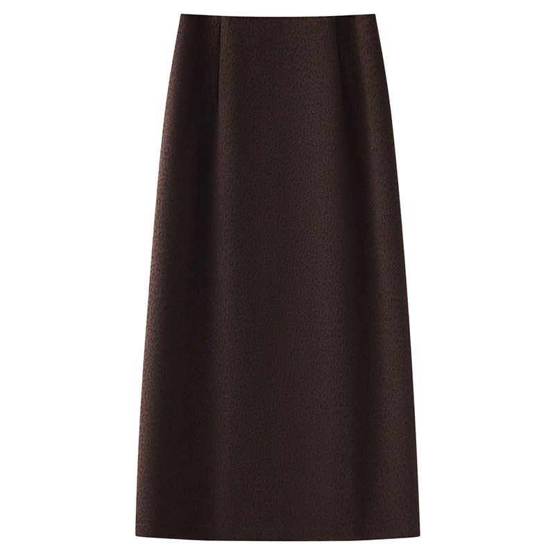 高端咖色羊绒半身裙女秋冬季2025新款羊毛呢后开叉绝美a字包臀裙