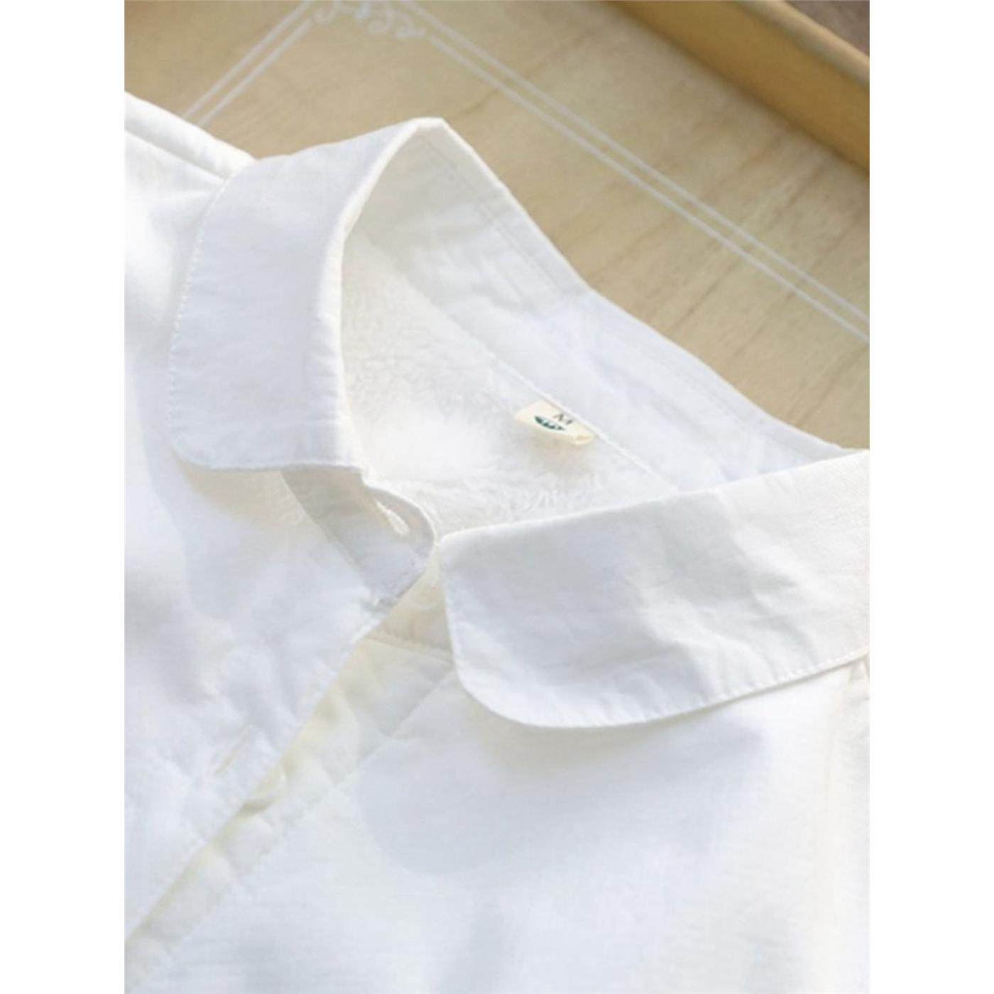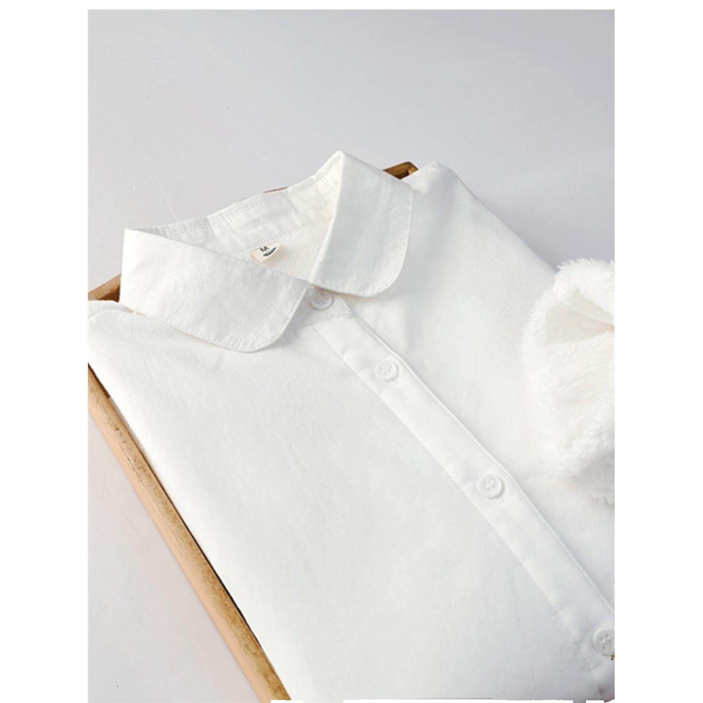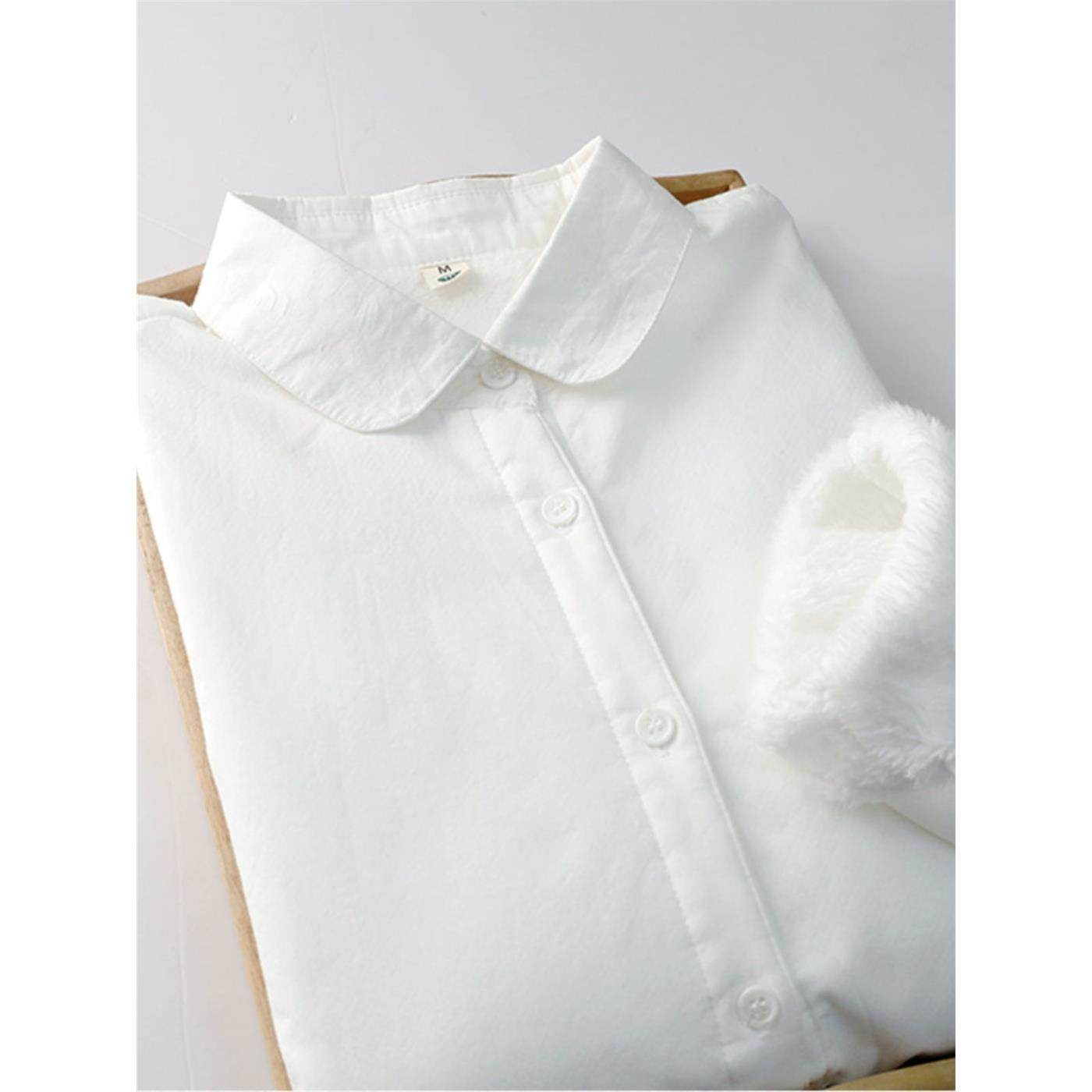 秋冬新款学生百搭娃娃领加绒白衬衫女长袖保暖加厚基础款打底衬衣