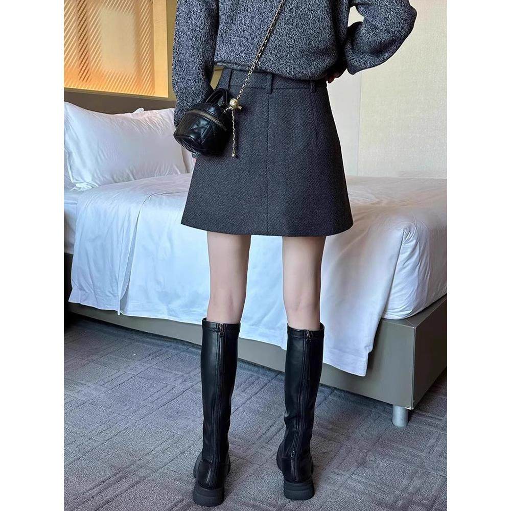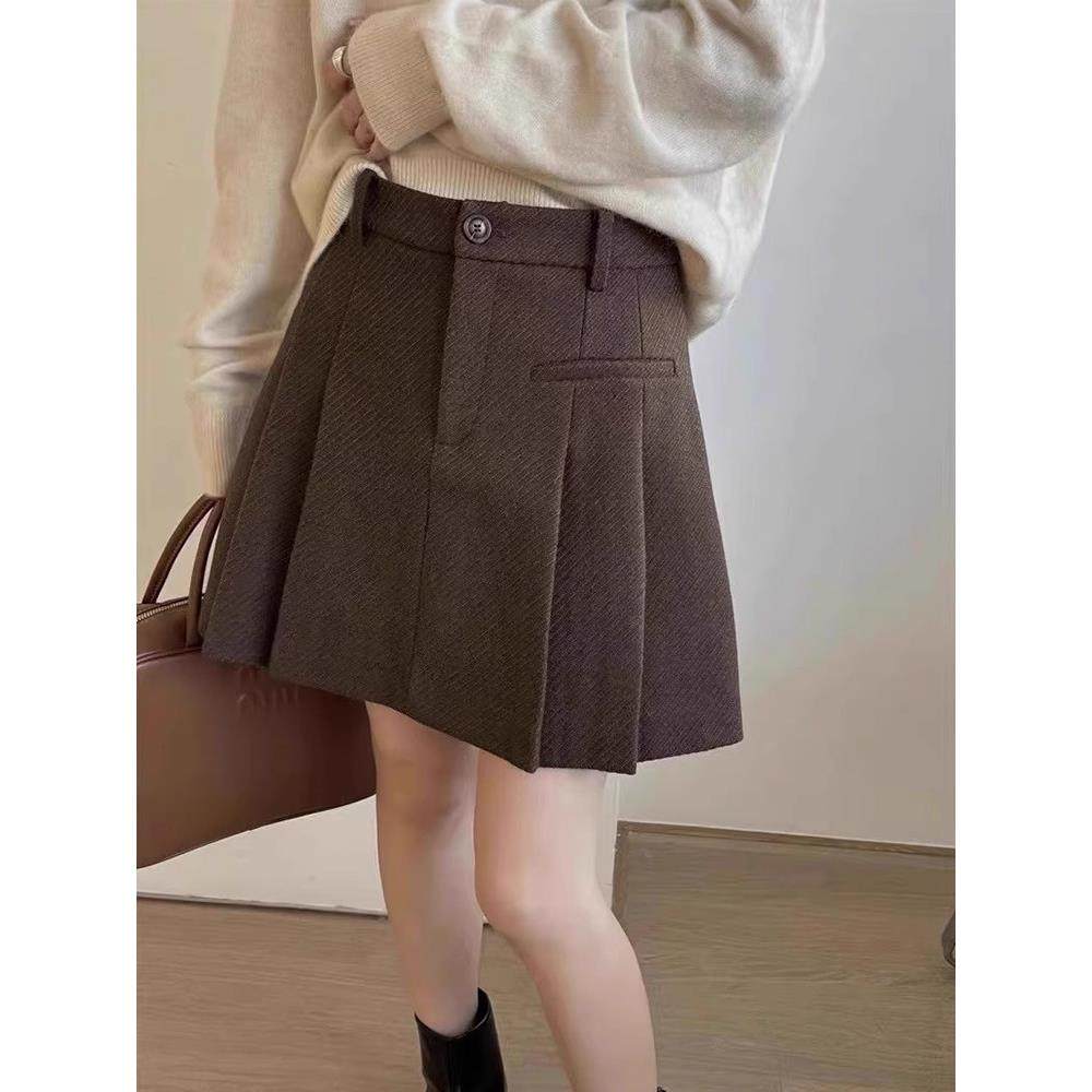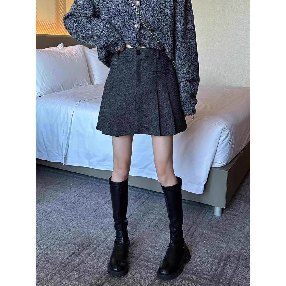 2025春秋新款毛呢半身裙女高腰减龄A字裙短裙防走光小个子百褶裙