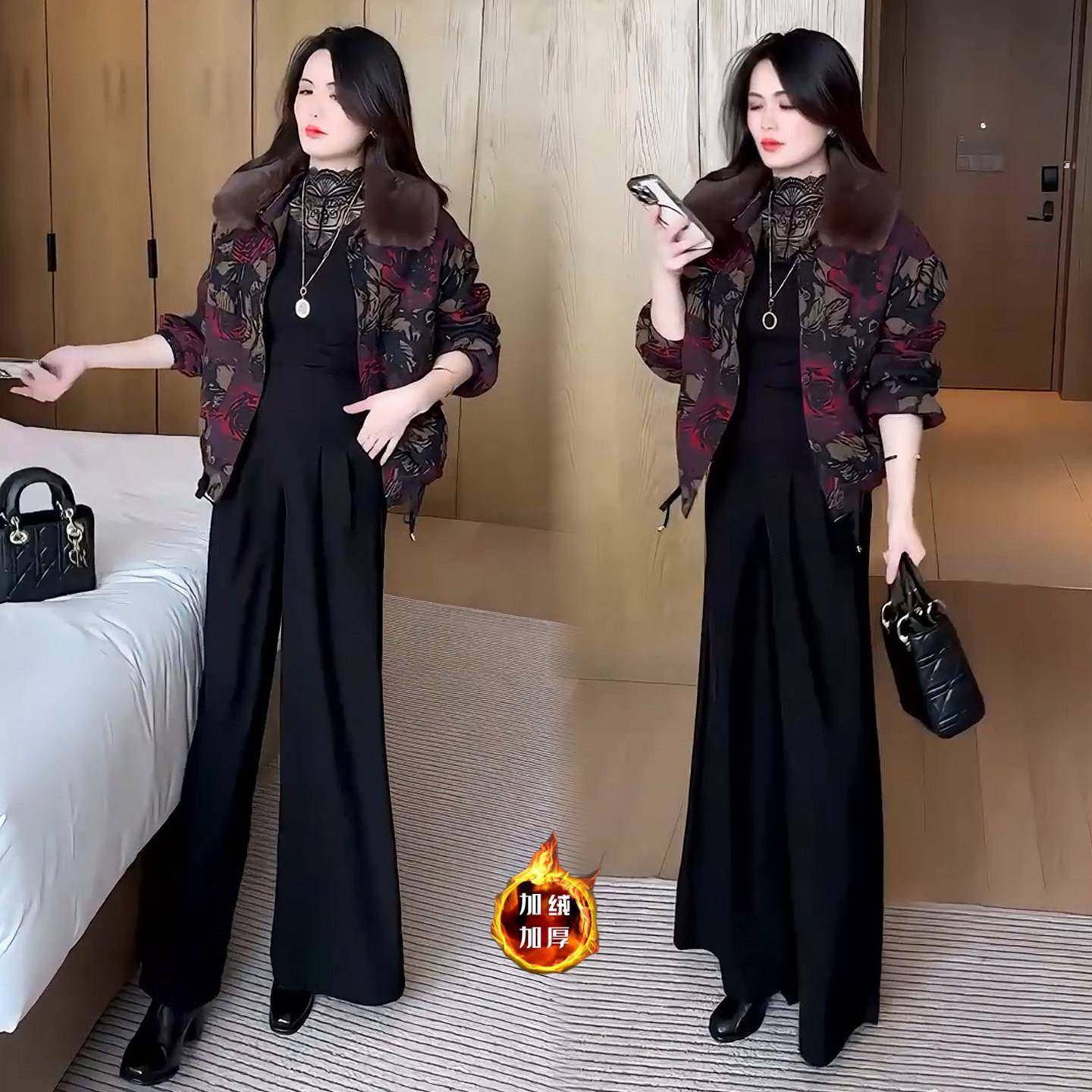 首页> 女装> 香港代购加绒加厚印花短外套女冬季新款时髦大毛领保暖夹克上衣潮