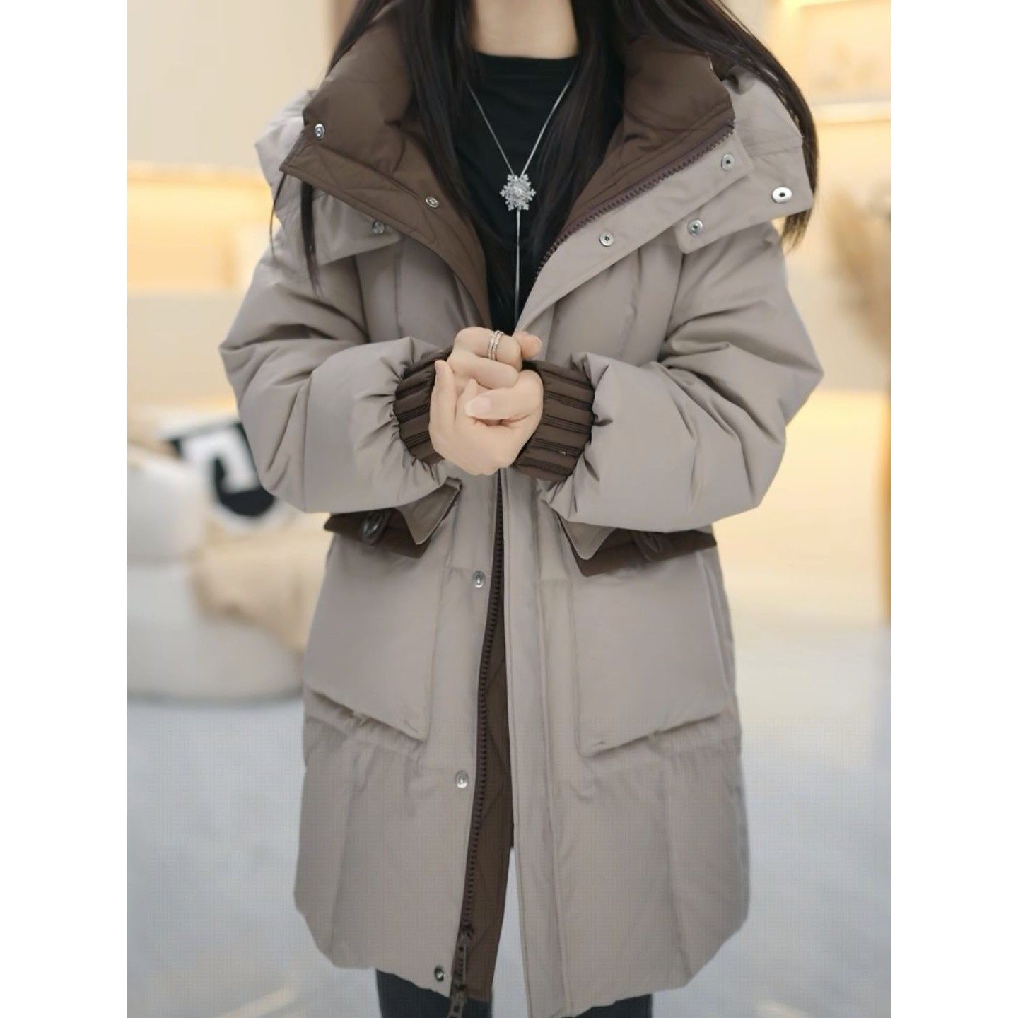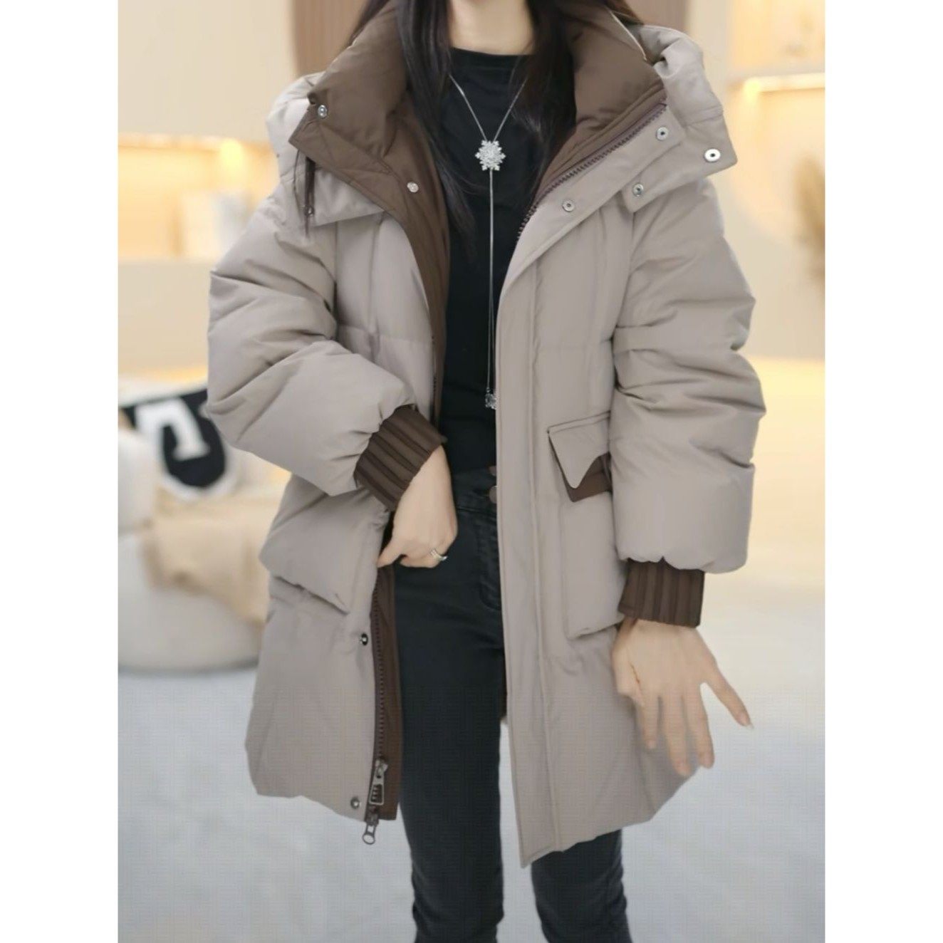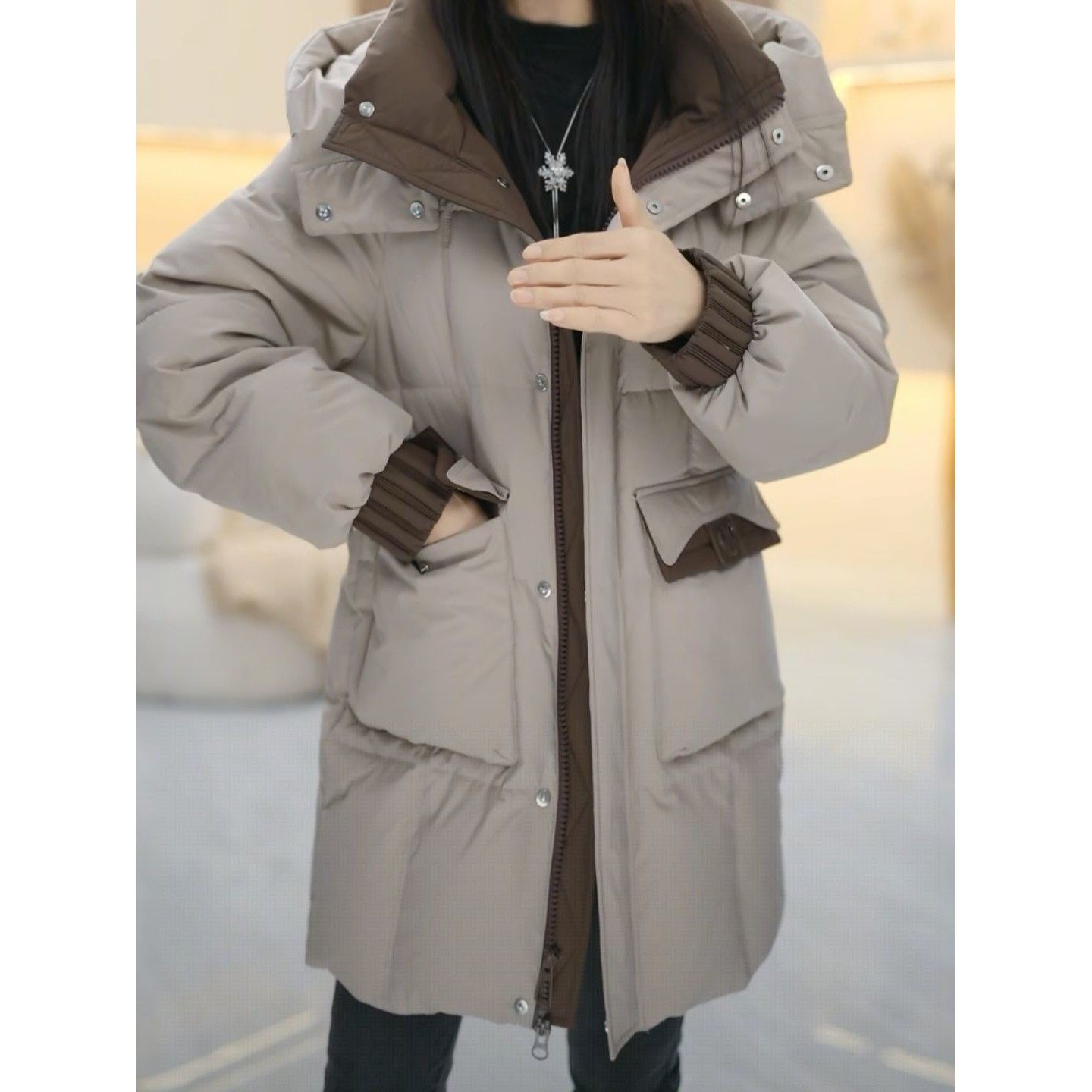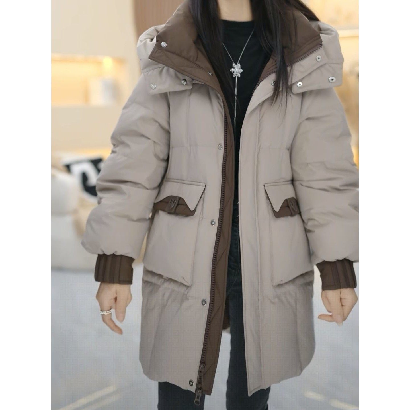 高级巨好看鸭绒羽绒服2025冬季新款连帽宽松百搭休闲中长款外套