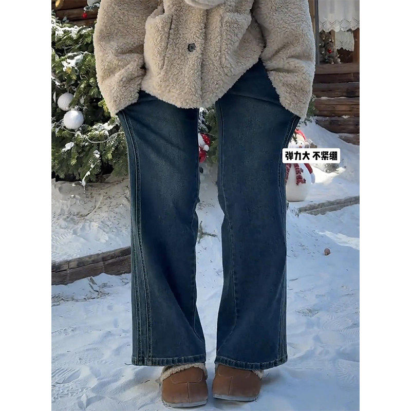 覆古蓝阔腿牛仔裤女春季新款大尺码胖mm高腰梨形身材显瘦遮胯拖地