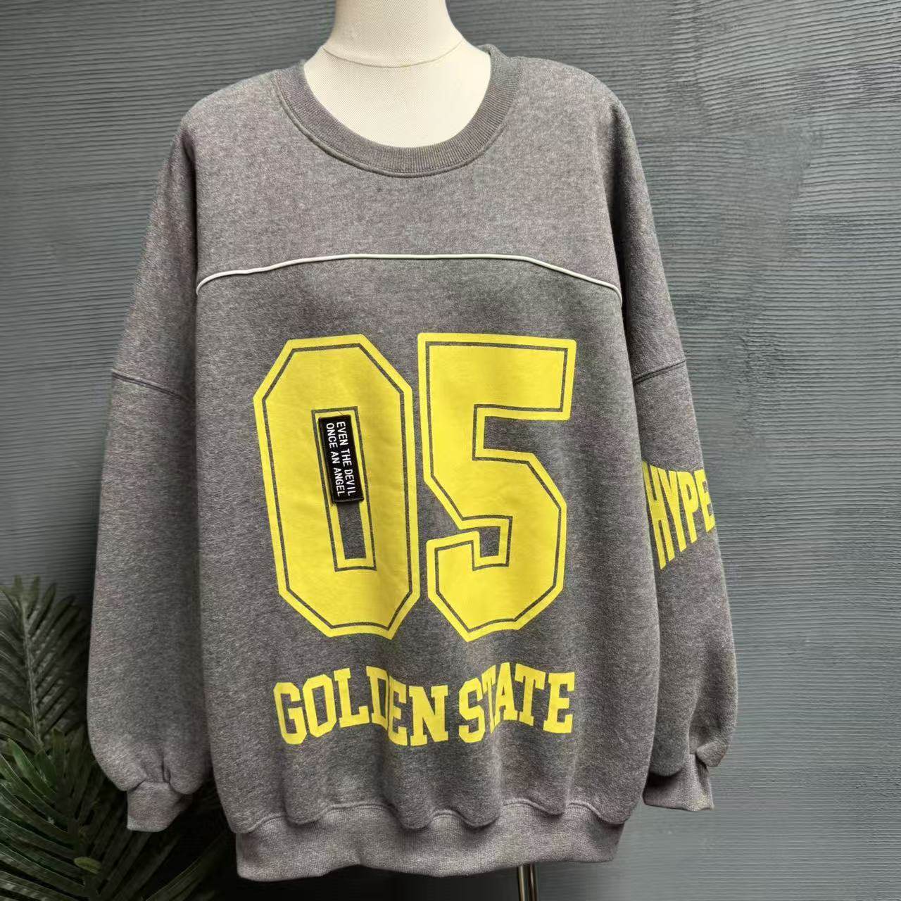镜服饰冬季美式复古运动风数字印花圆领卫衣女宽松显瘦上衣10798
