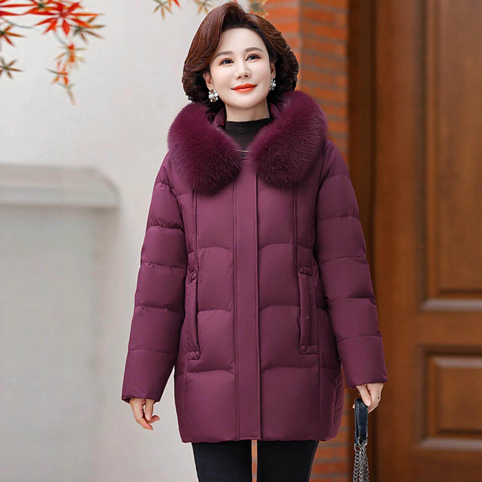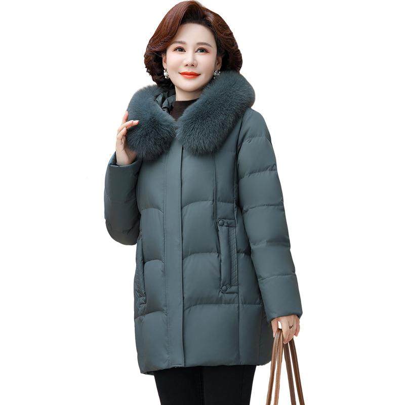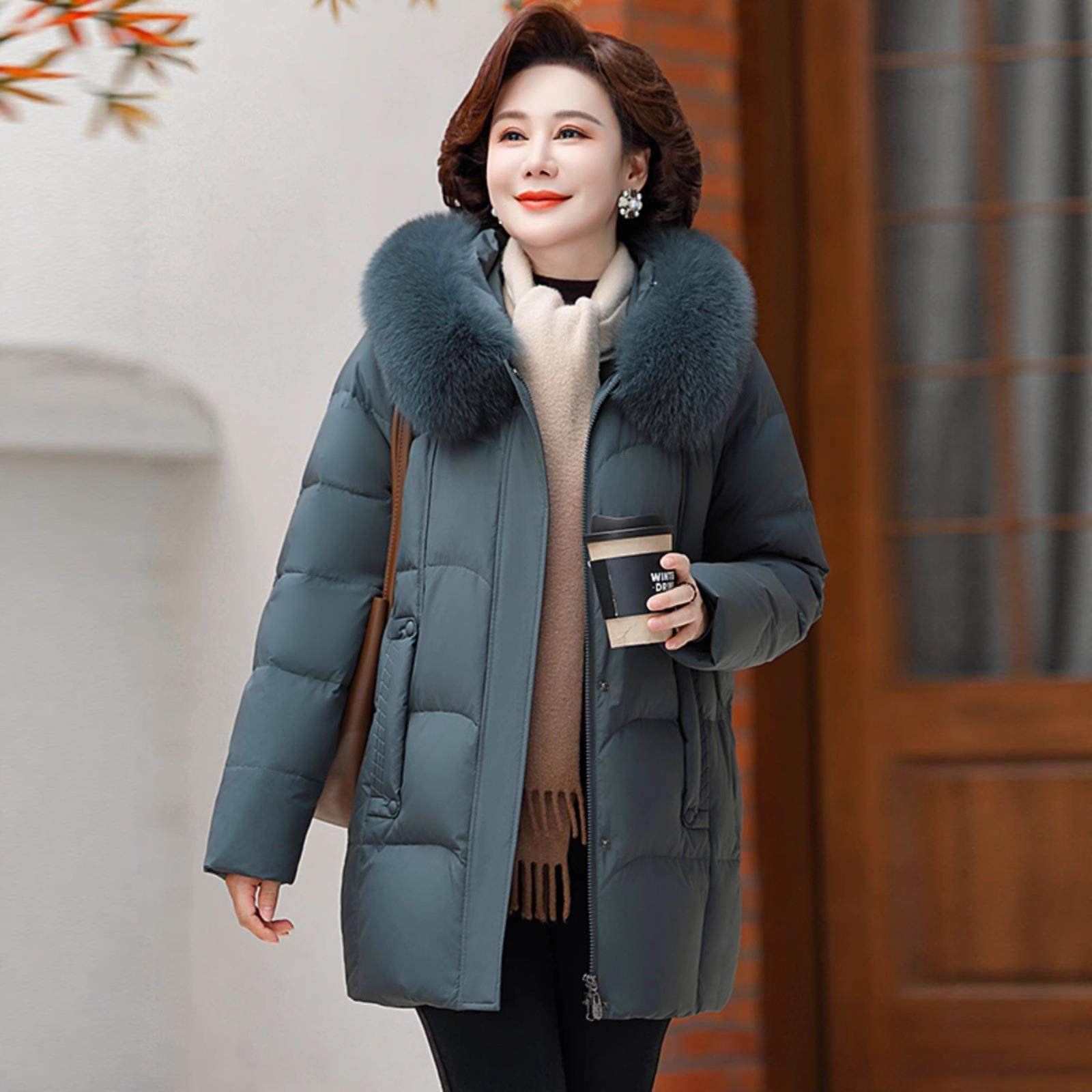 妈款妈羽服8666冬装女中长加厚款狸外套白鸭绒中老年奶奶绒装狐领