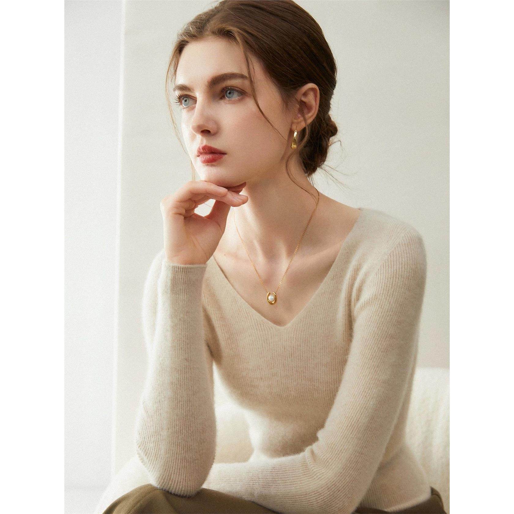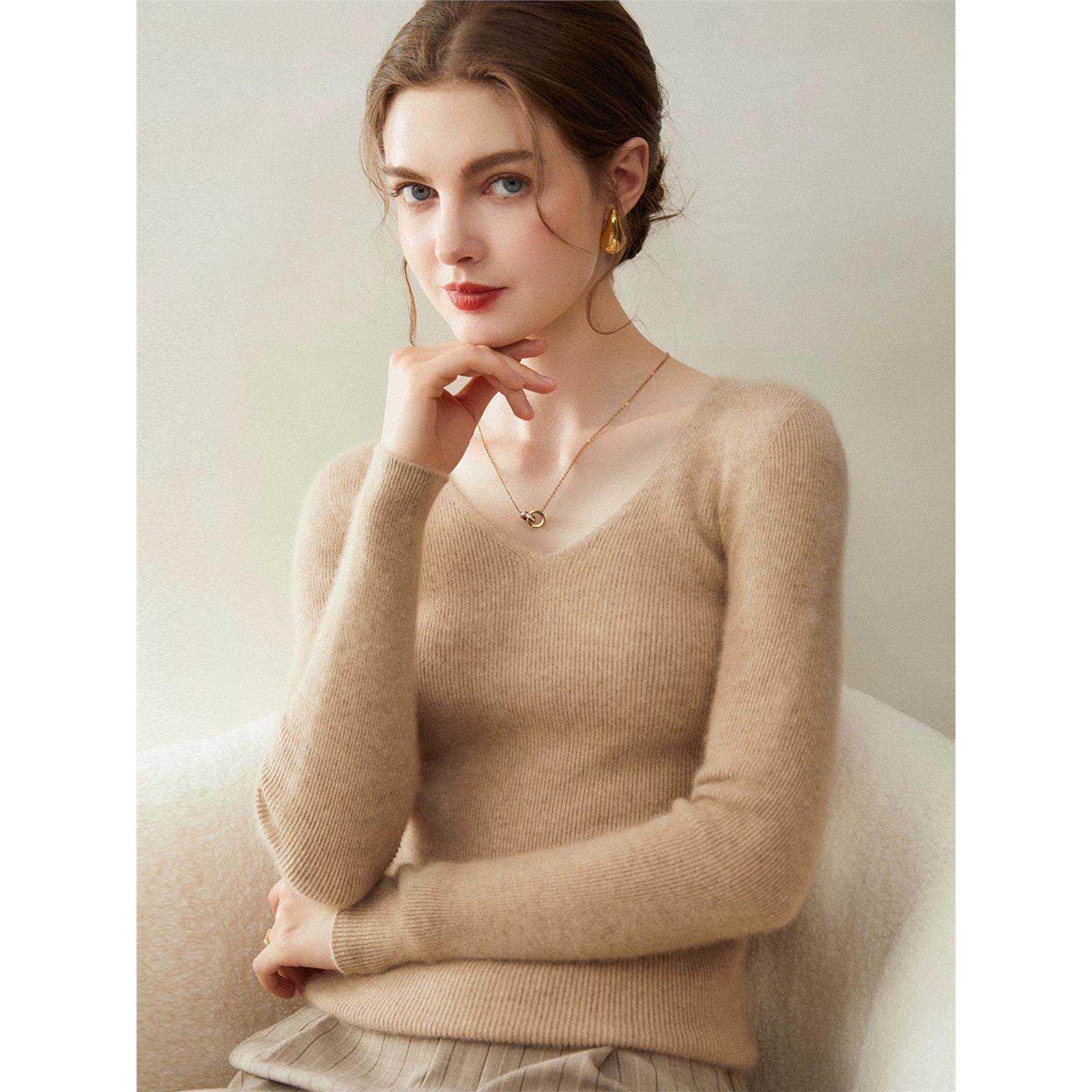 无缝一线成衣羊绒衫女V领修身毛衣秋冬季新款针织羊毛打底衫内搭