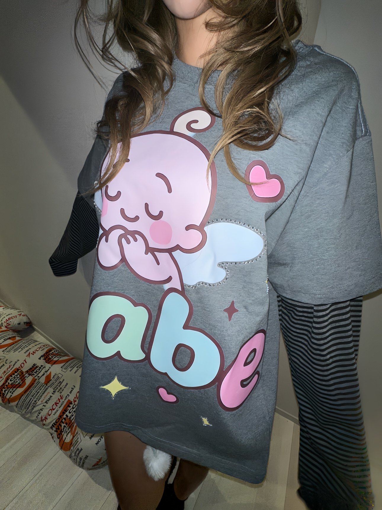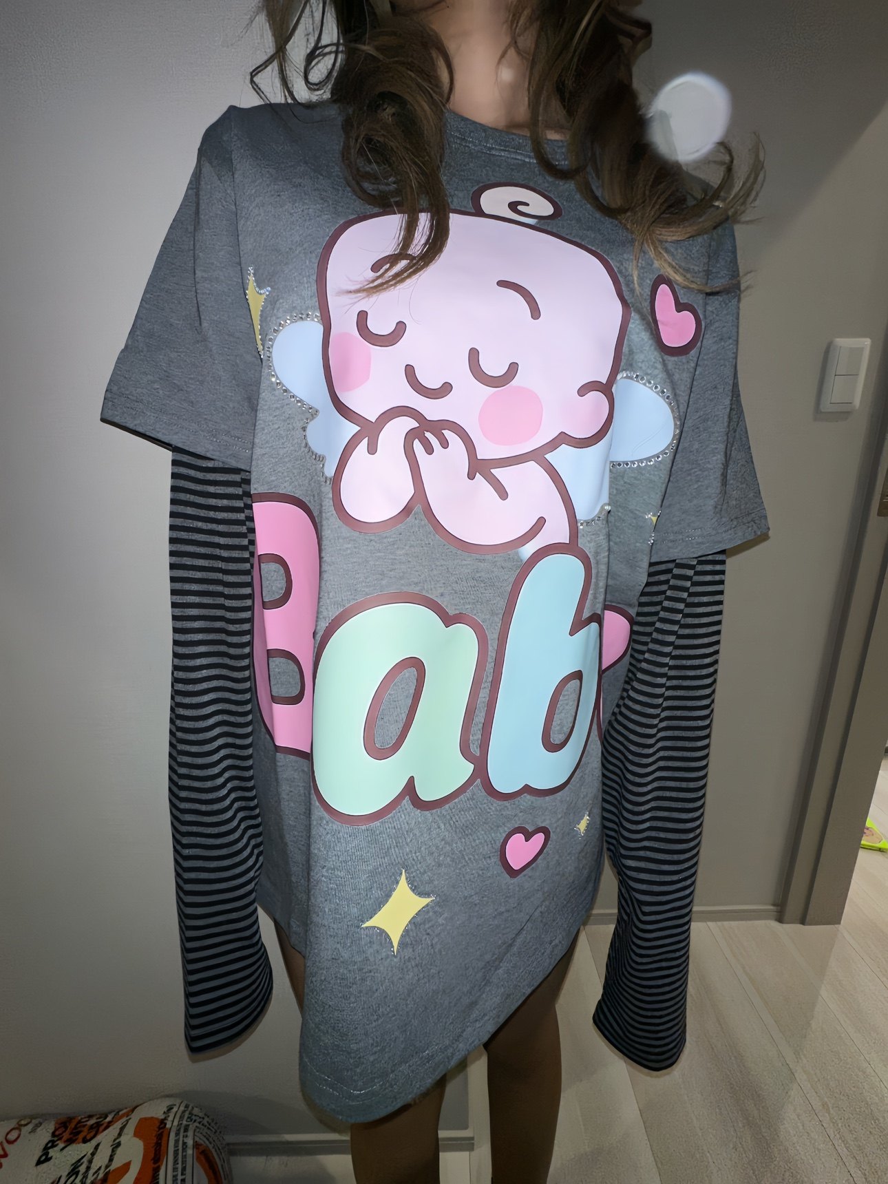 Srrybabe 印花长袖T恤女宽松显瘦百搭上衣