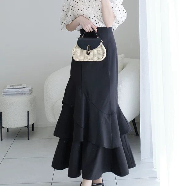 首页> 女装> D070104日单新款GL隐形拉链松紧高腰鱼尾裙女甜美气质层次半身裙