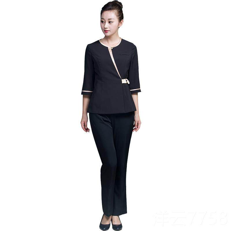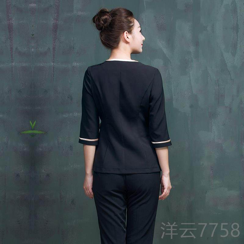 高档美容师工容作服女套装中袖黑美摩院养足生馆SPA会所沐浴按师