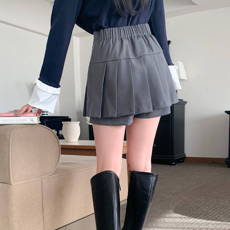 时尚起义韩国潮范2026春半松紧腰侧拉链百褶裙裤半身裙dp26012604