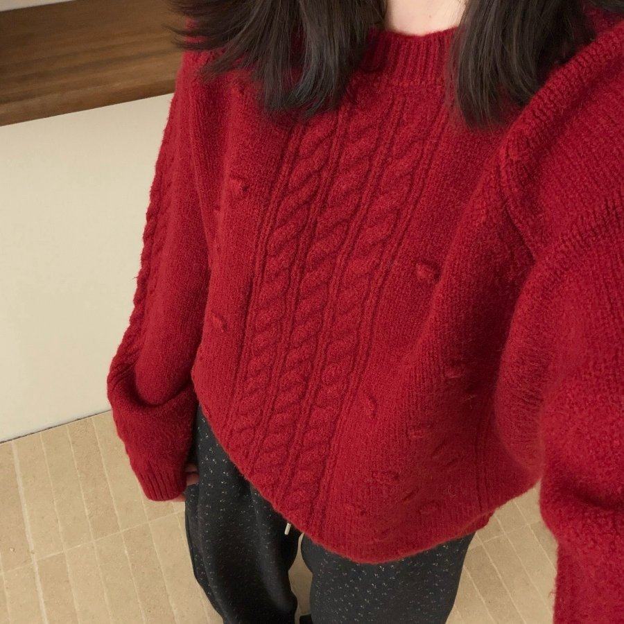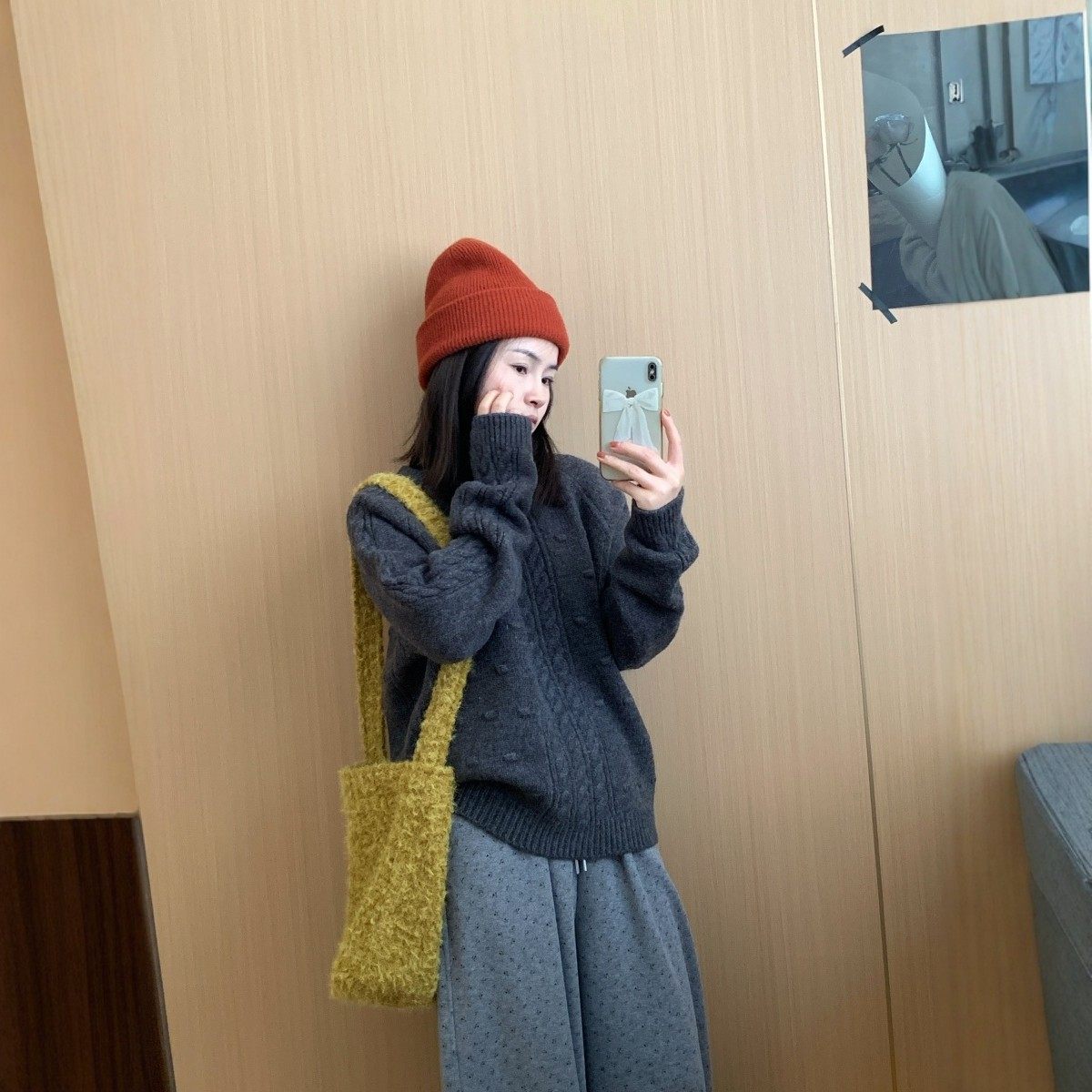 此外 圆领点点可爱设计感套头毛衣女2025冬季新款短款毛衣宽松款