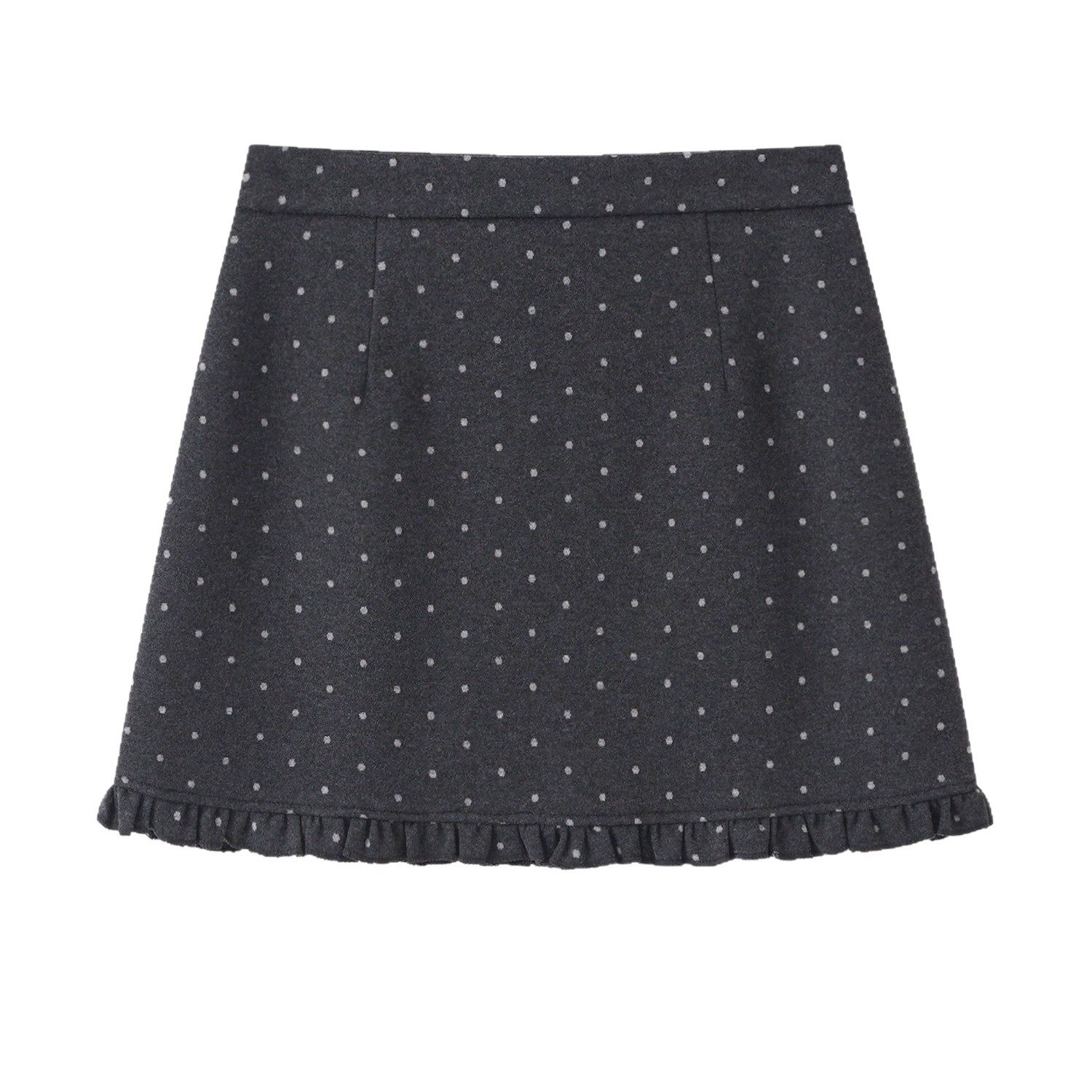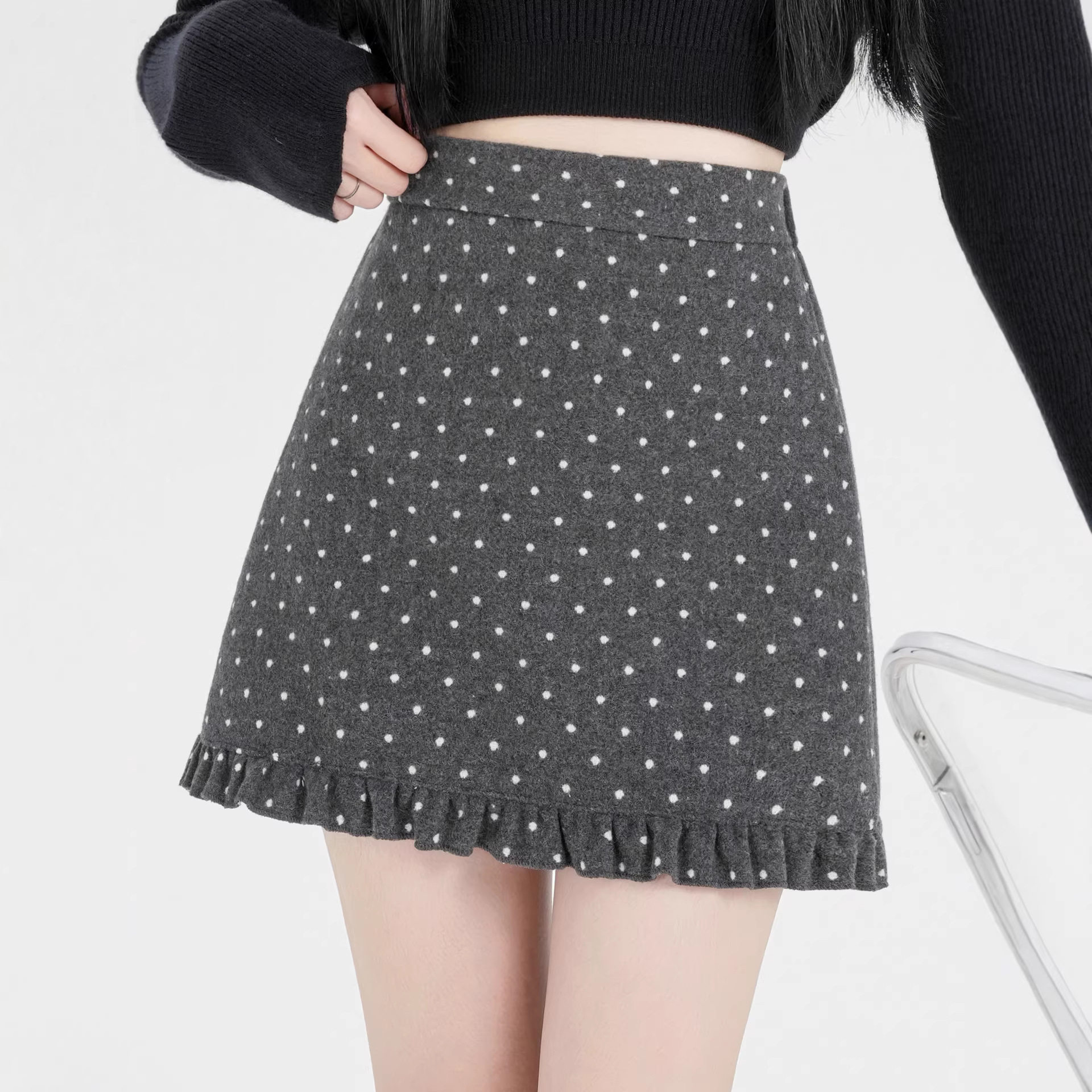 首页> 女装> 毛呢波点半身裙女秋冬小个子休闲高腰显瘦气质木耳边a字包臀短裙