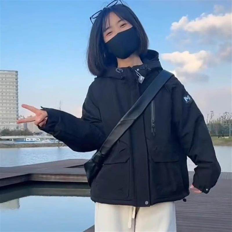 连帽加绒加厚冲锋衣外套女冬季新款2025爆款韩版宽松小个子派克服