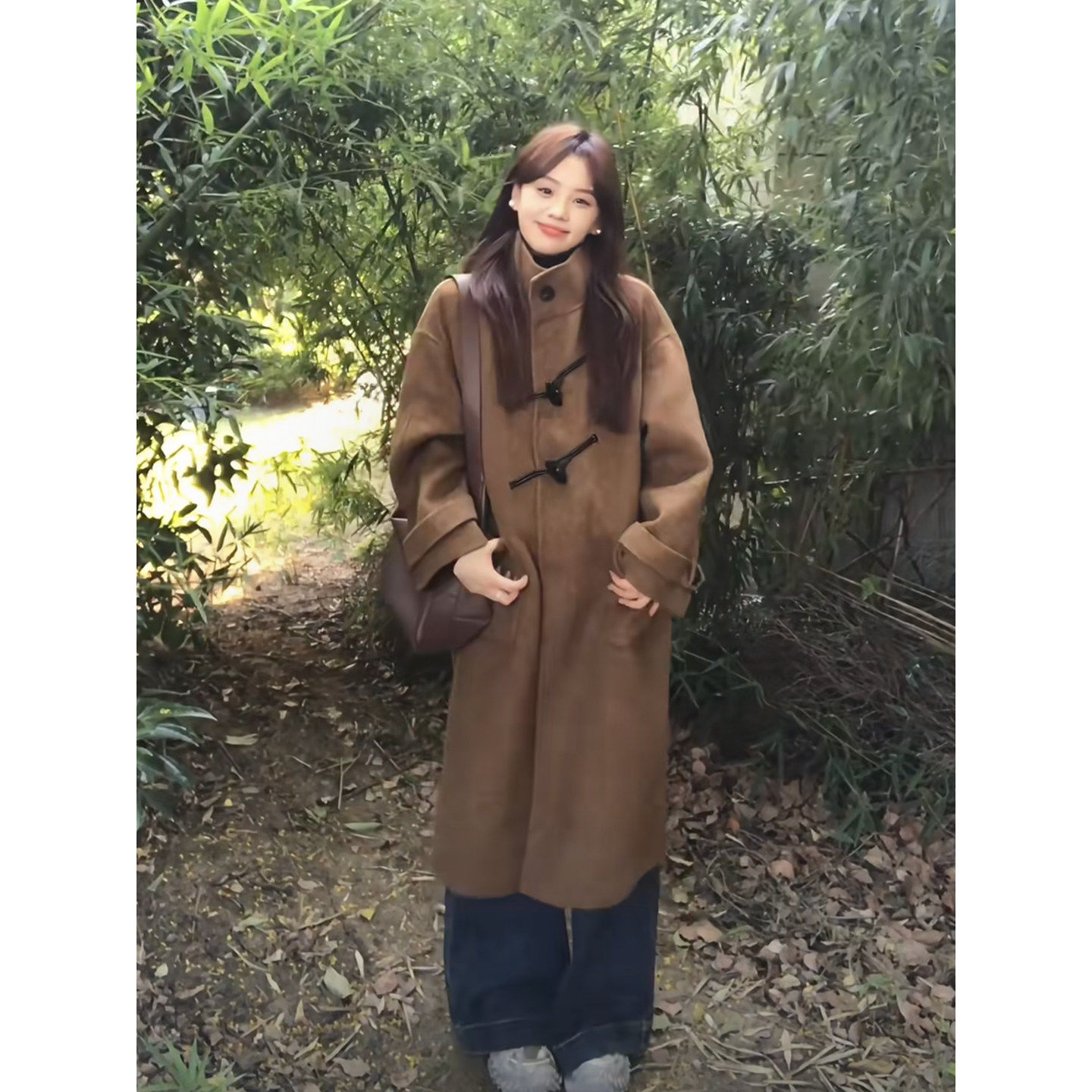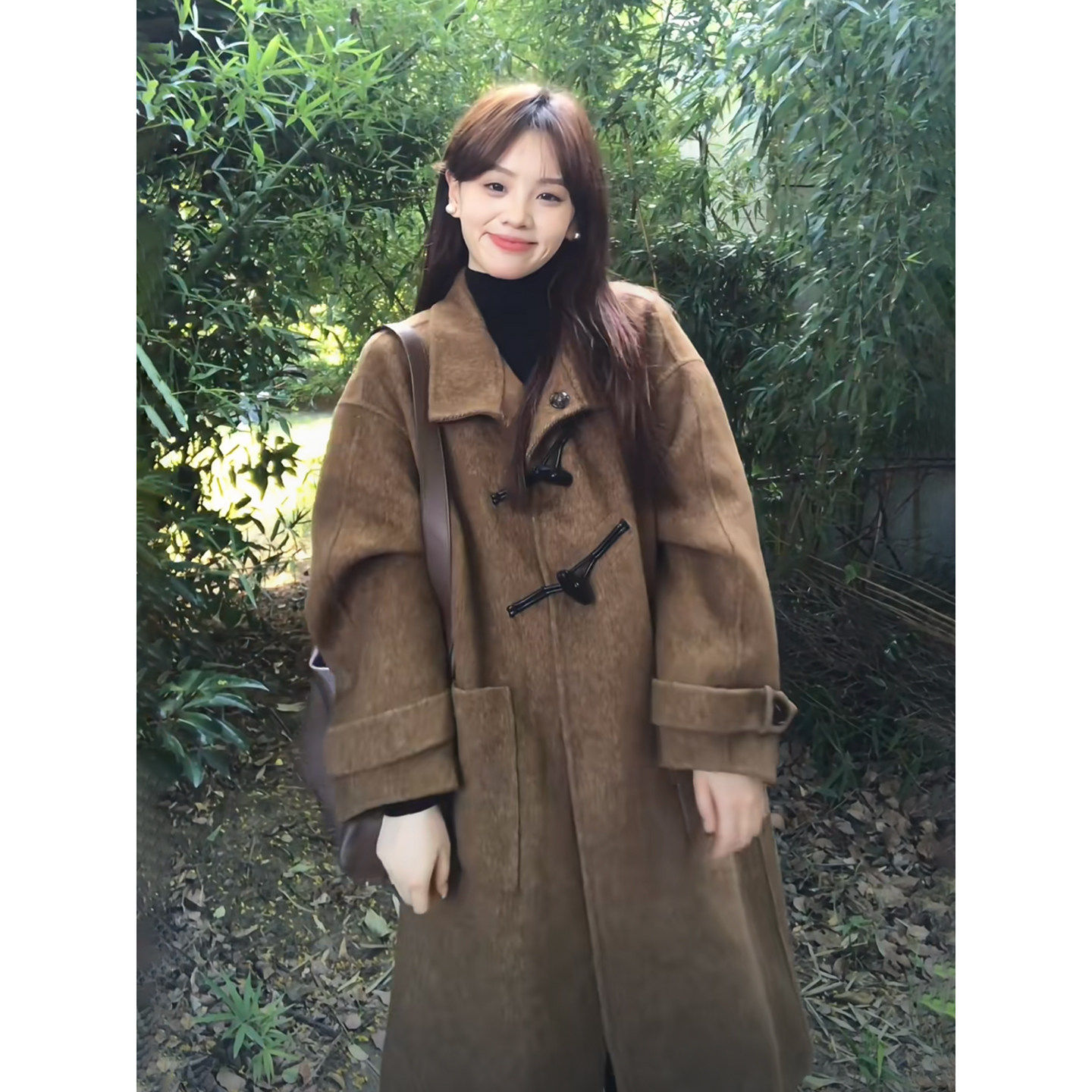 2025新款深冬独特超好看牛角扣呢子大衣女入冬毛呢外套高级感加厚