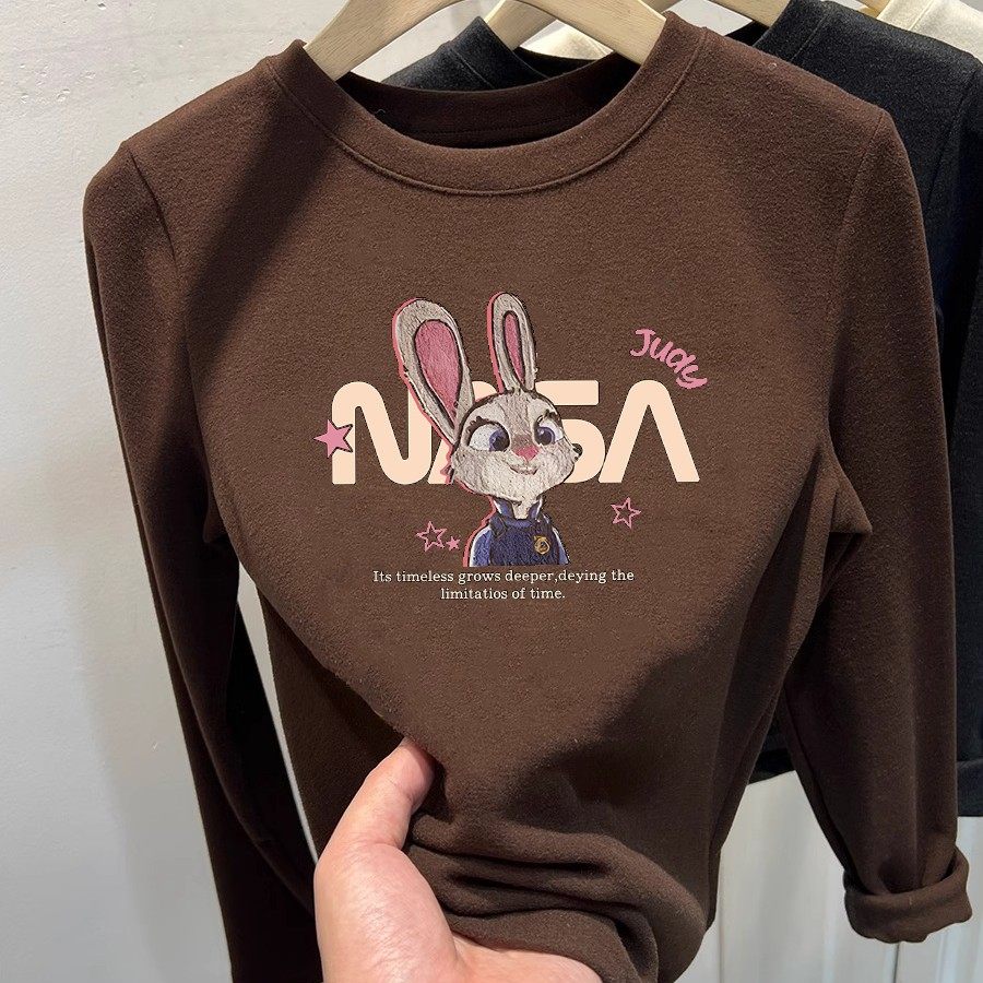 也太美了叭!洋气双面磨毛德绒长袖T恤女洋气猫咪印花打底衫上衣
