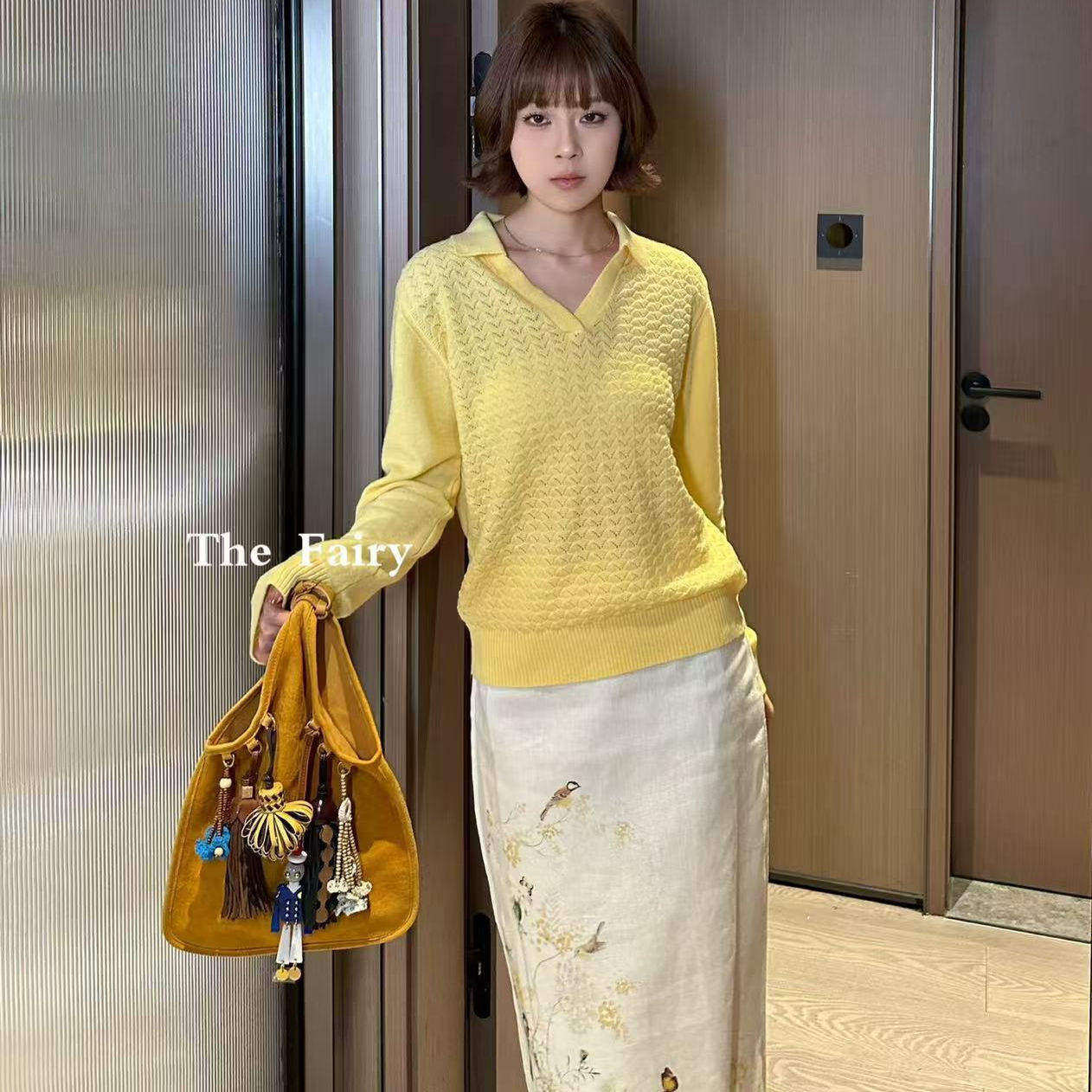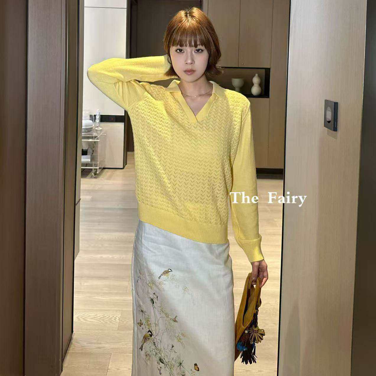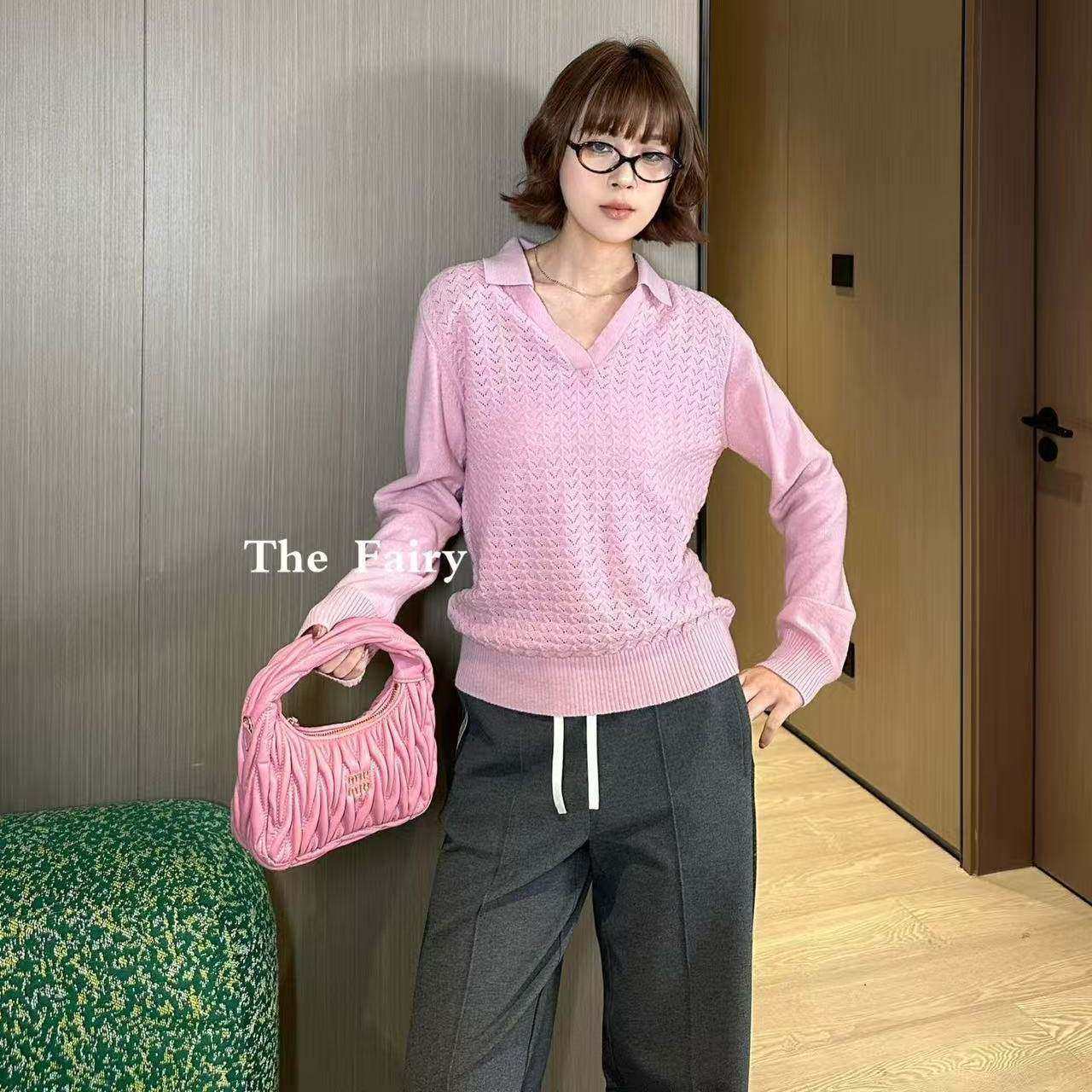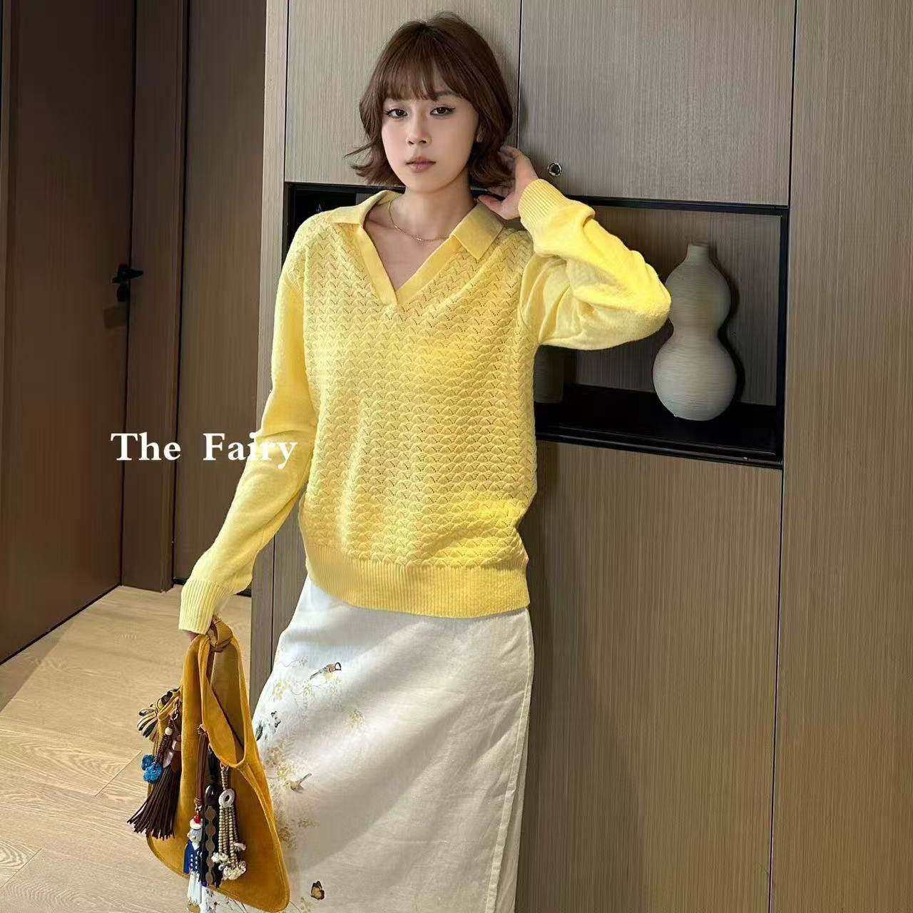 好漂亮好漂亮翻领针织扇形镂空羊毛打底衫女2025年冬季新款上衣潮