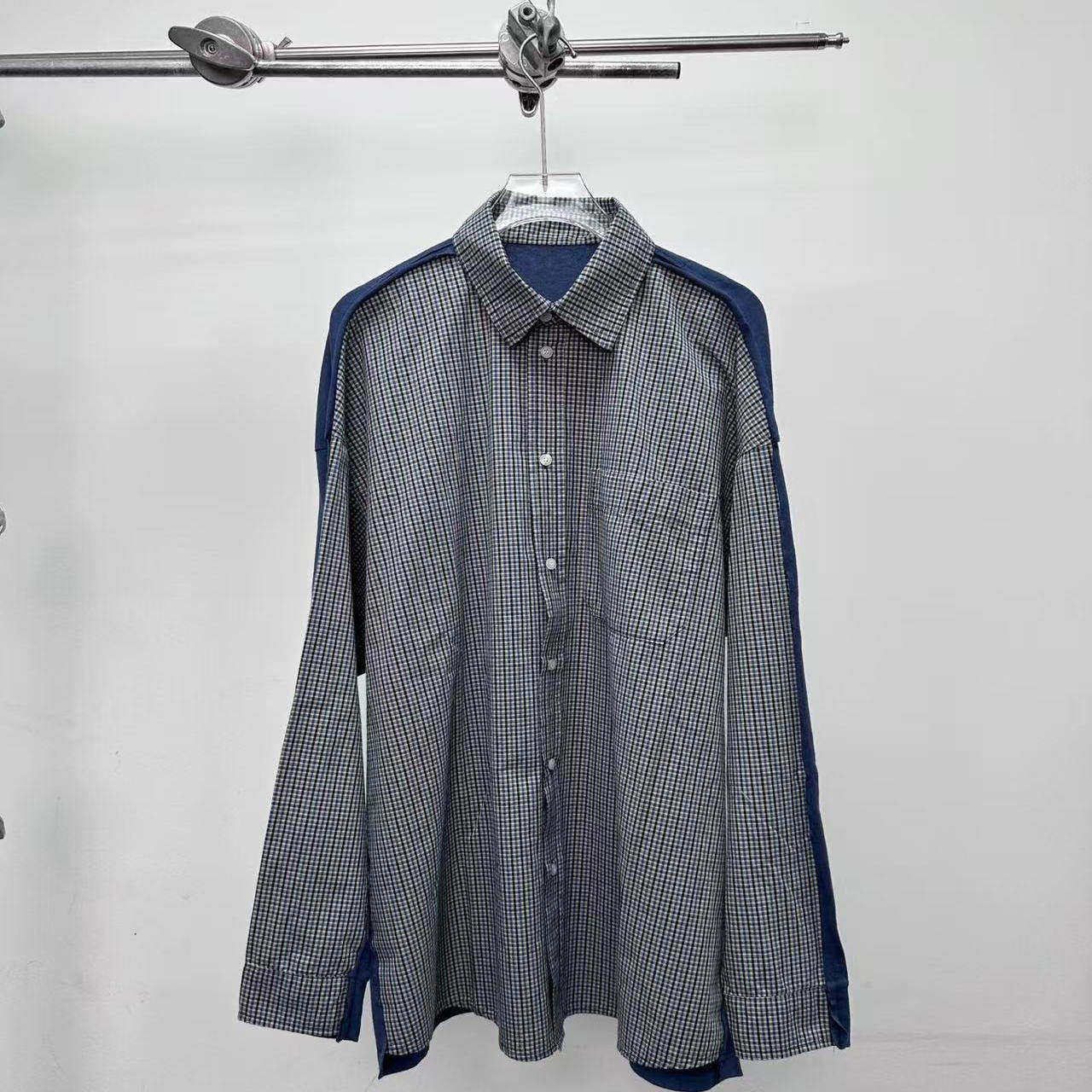 好漂亮好漂亮复古红格纹拼接假两件衬衫男女同款2025年宽松休闲潮