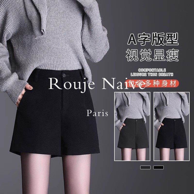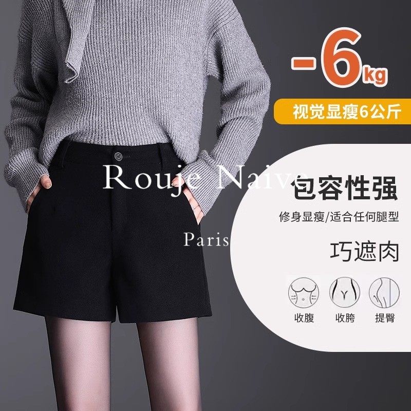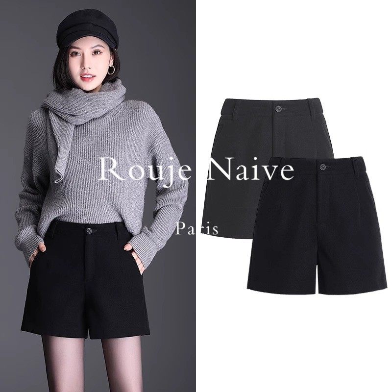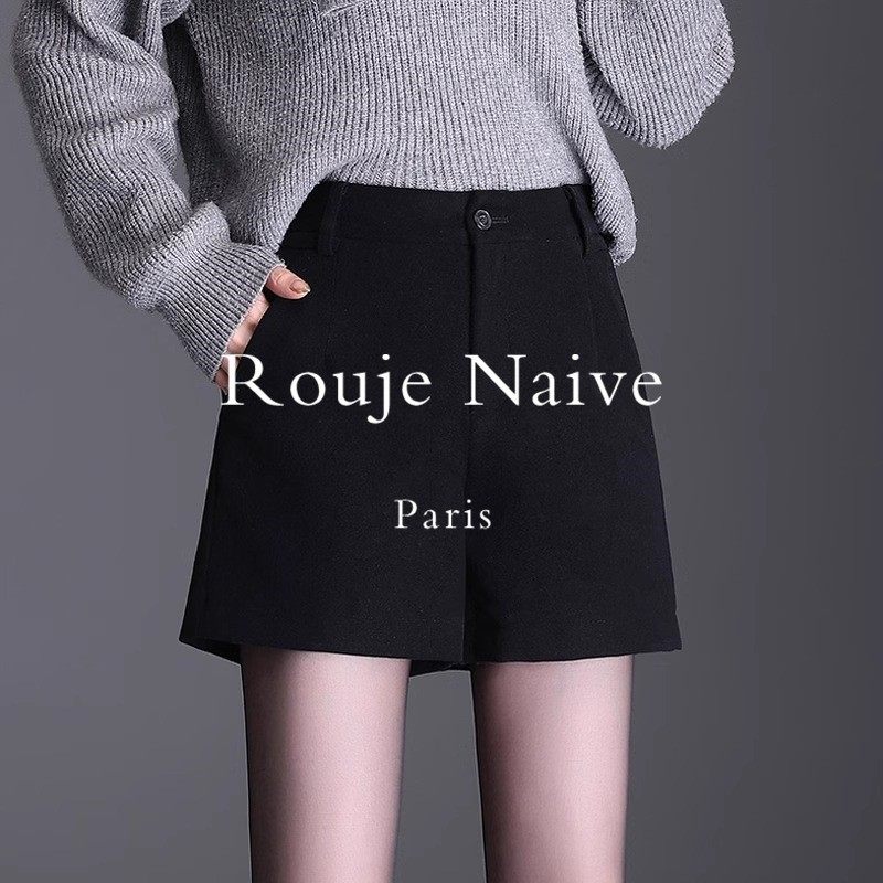 Rouje Naive短裤女秋冬新款女款外穿靴裤子黑色西装短裤毛呢冬季