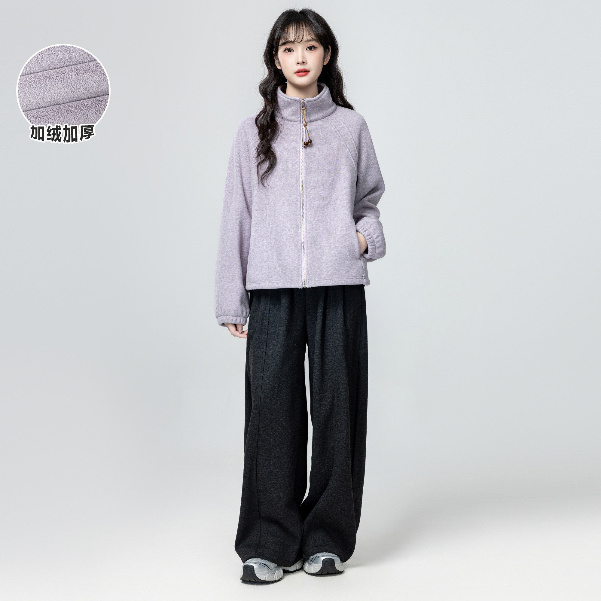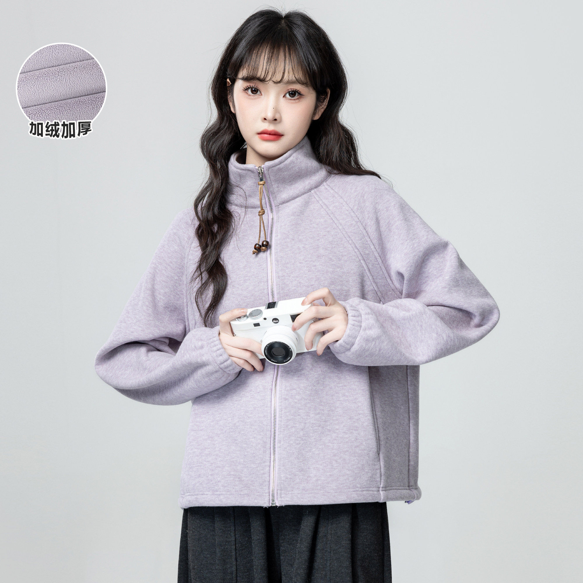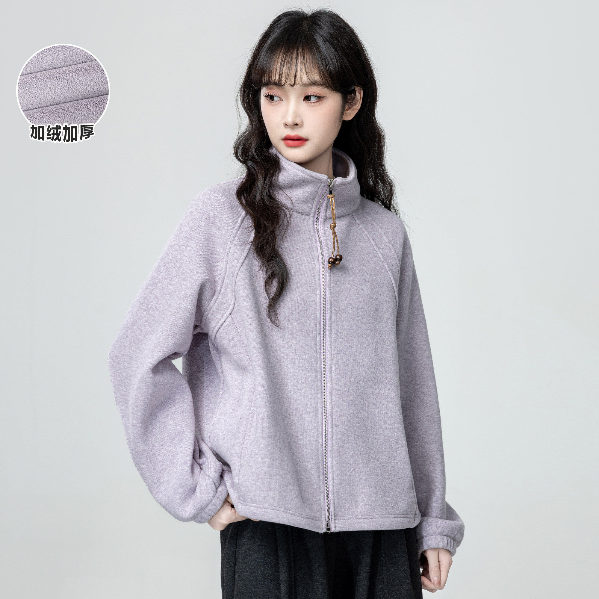 紫色高领加绒加厚卫衣外套女秋冬2025冬新款宽松立领拉链开衫上衣
