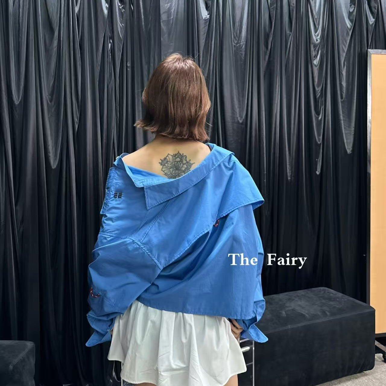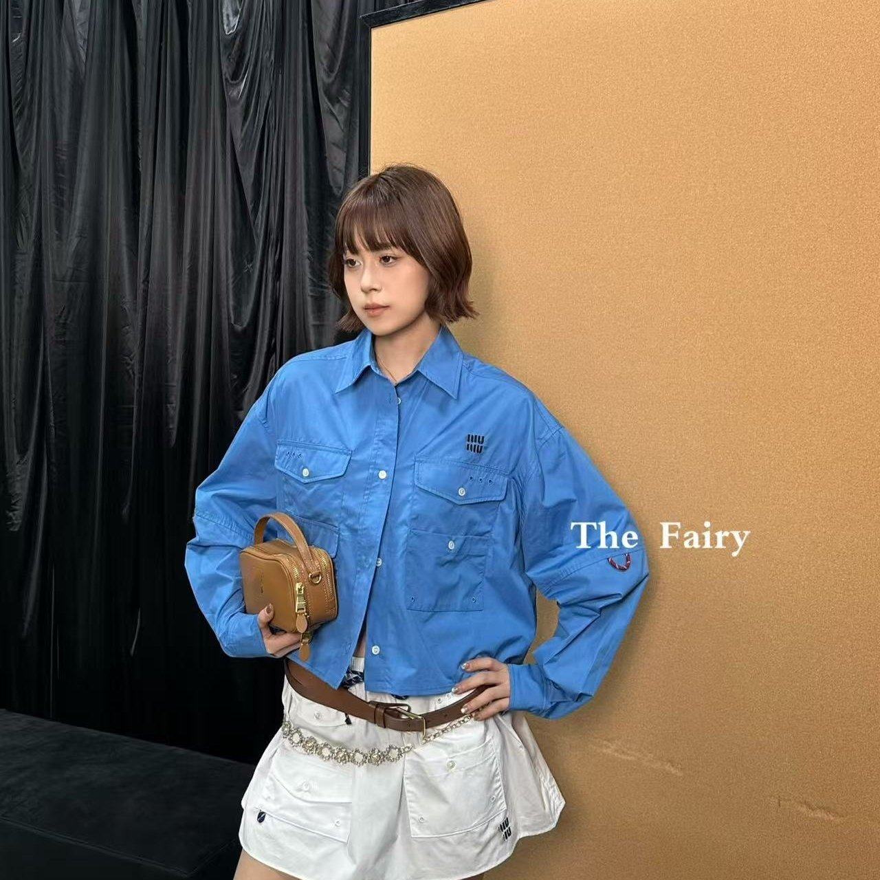 好漂亮字母蓝色刺绣衬衫外套女2026年早春新款短上衣宽松休闲时尚