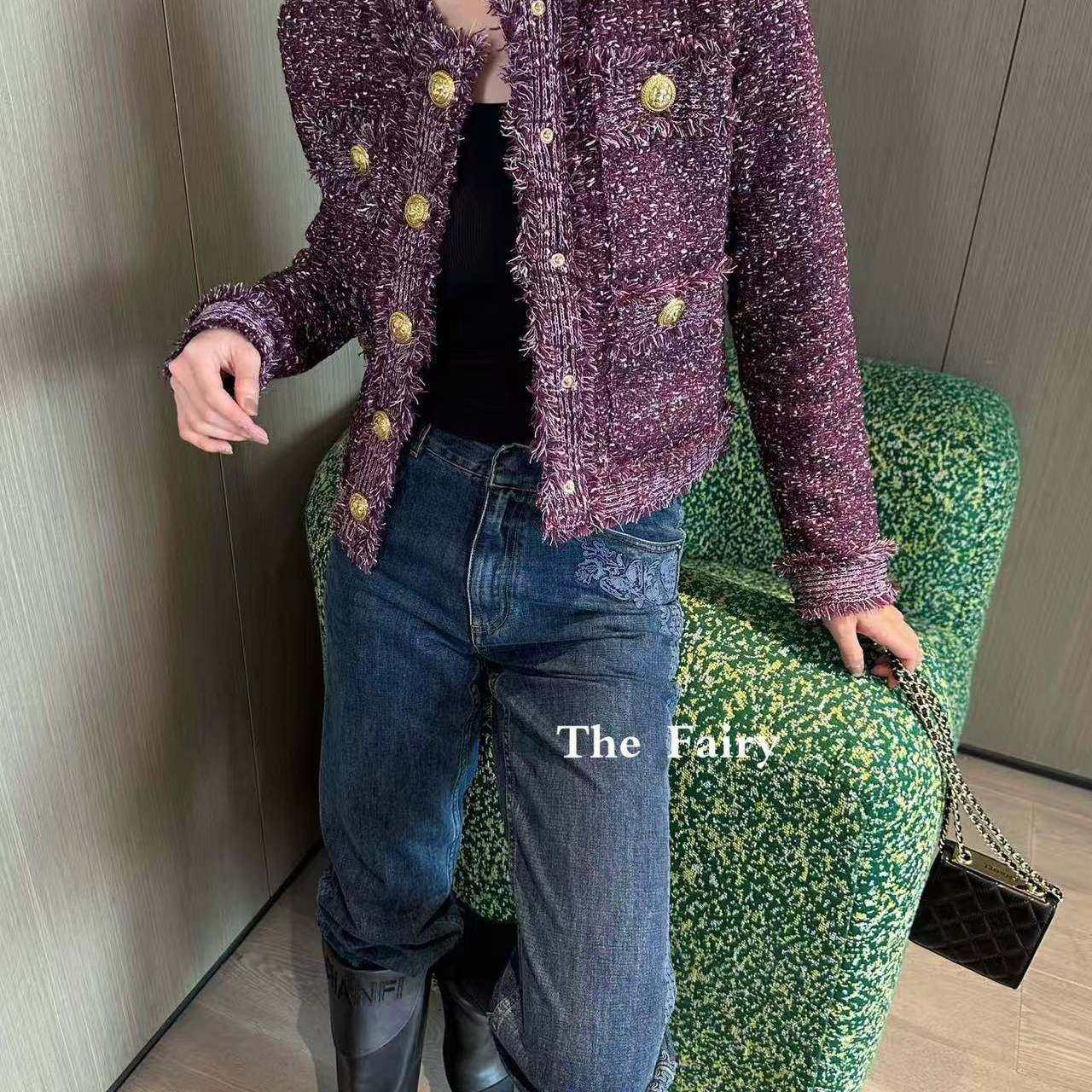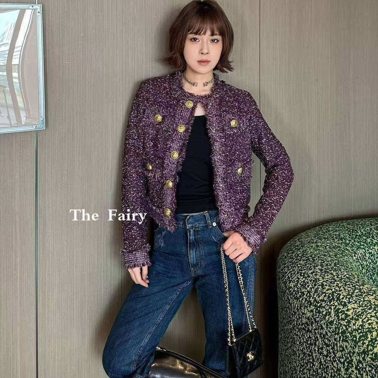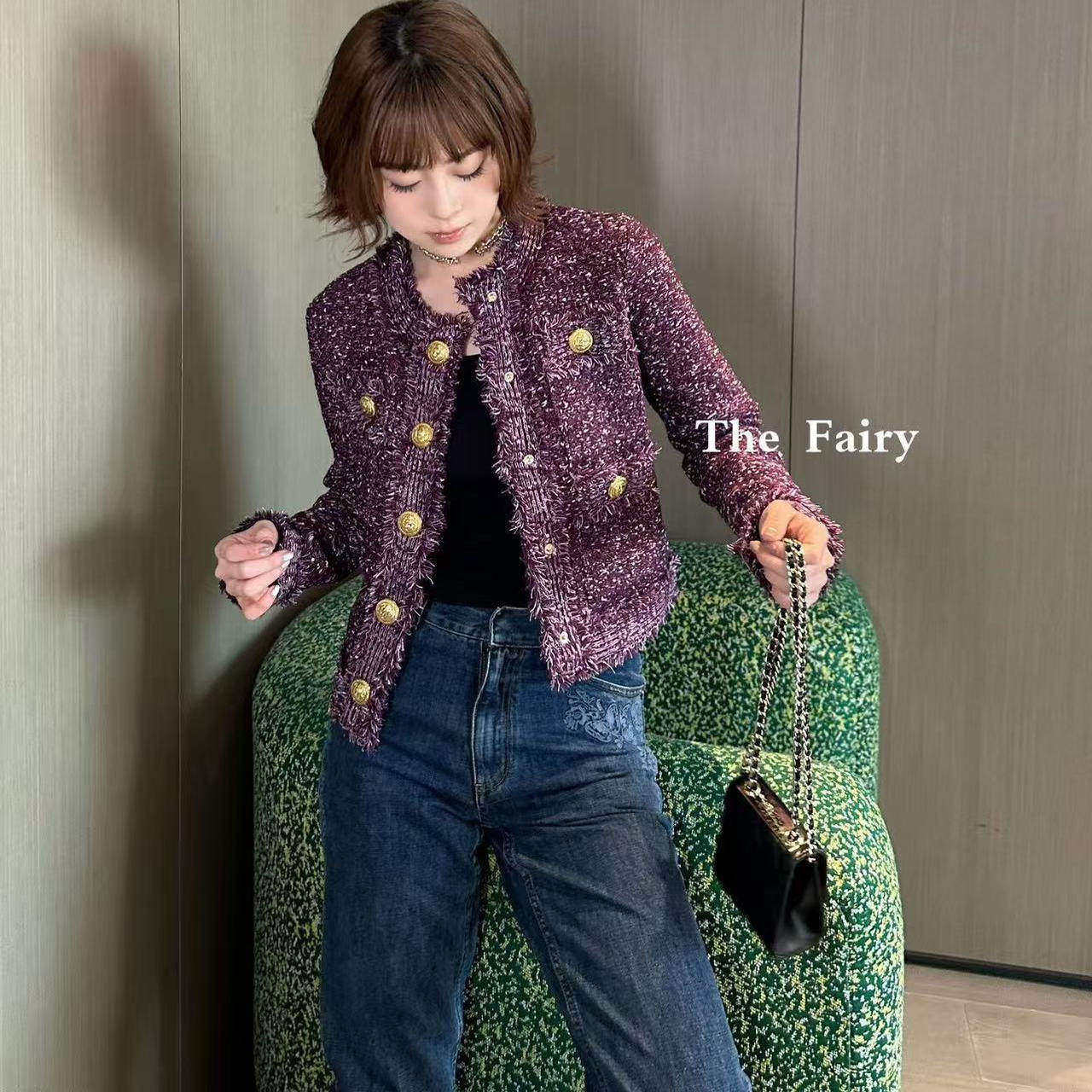 好漂亮好漂亮紫色针织开衫外套女2025年冬季新款短上衣名媛气质潮