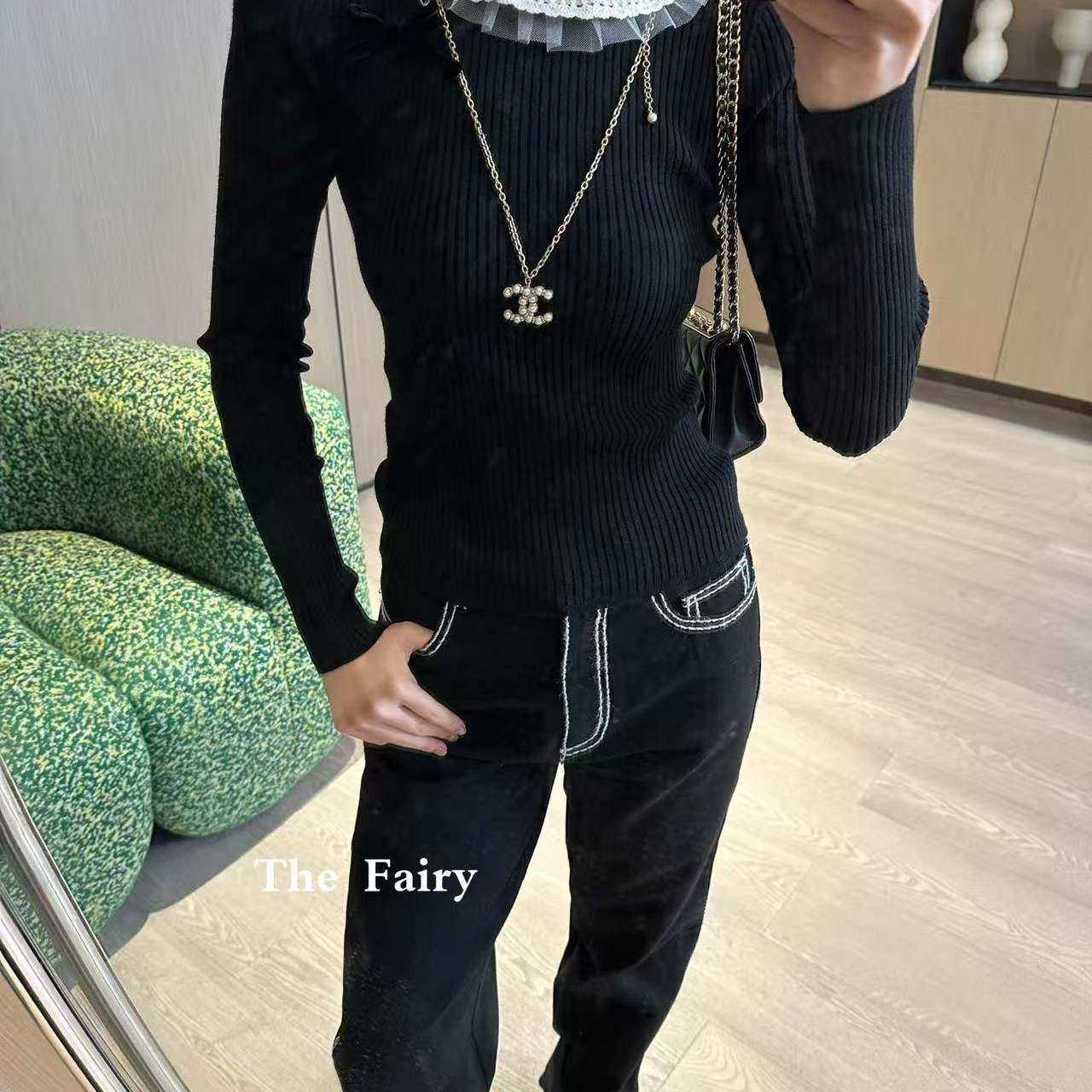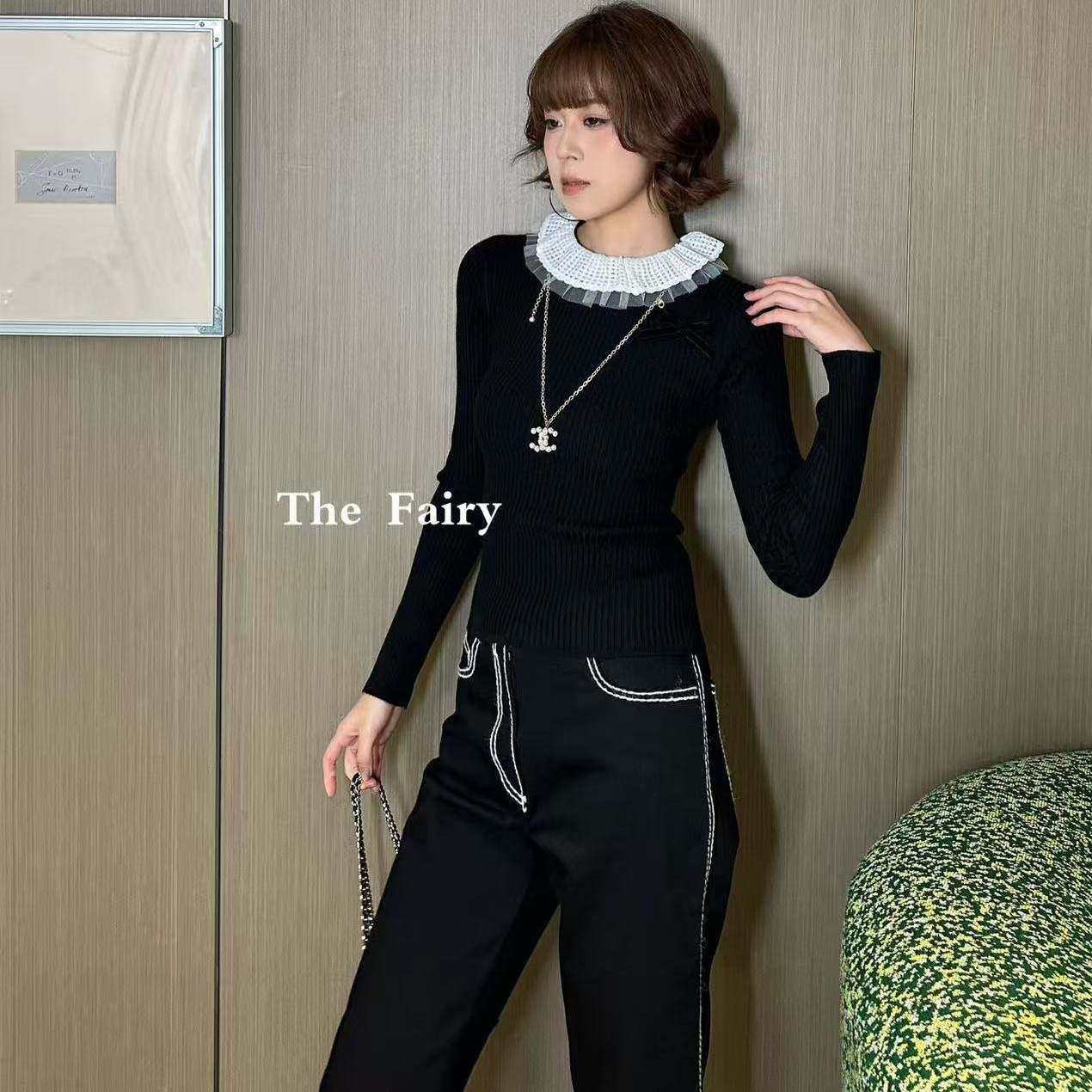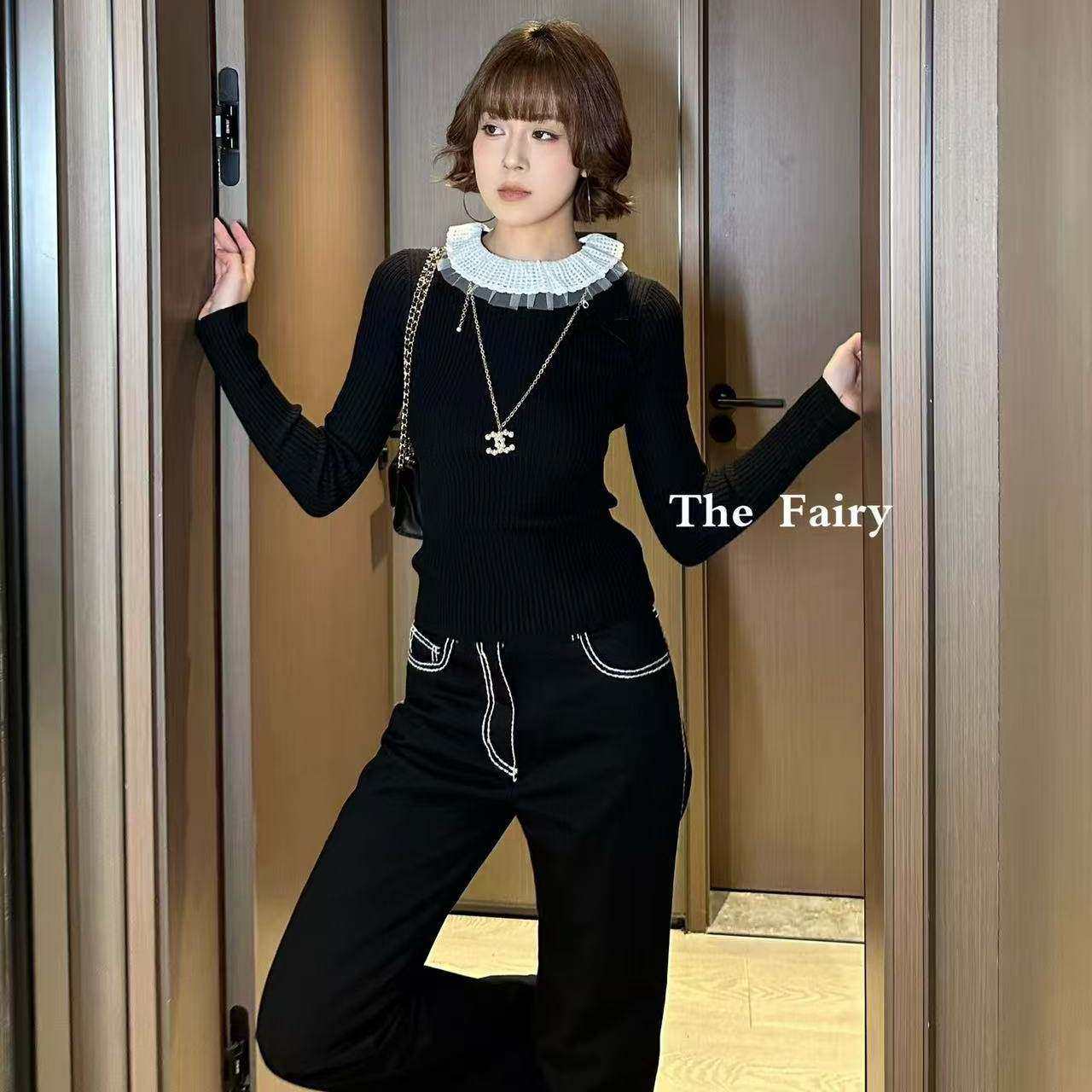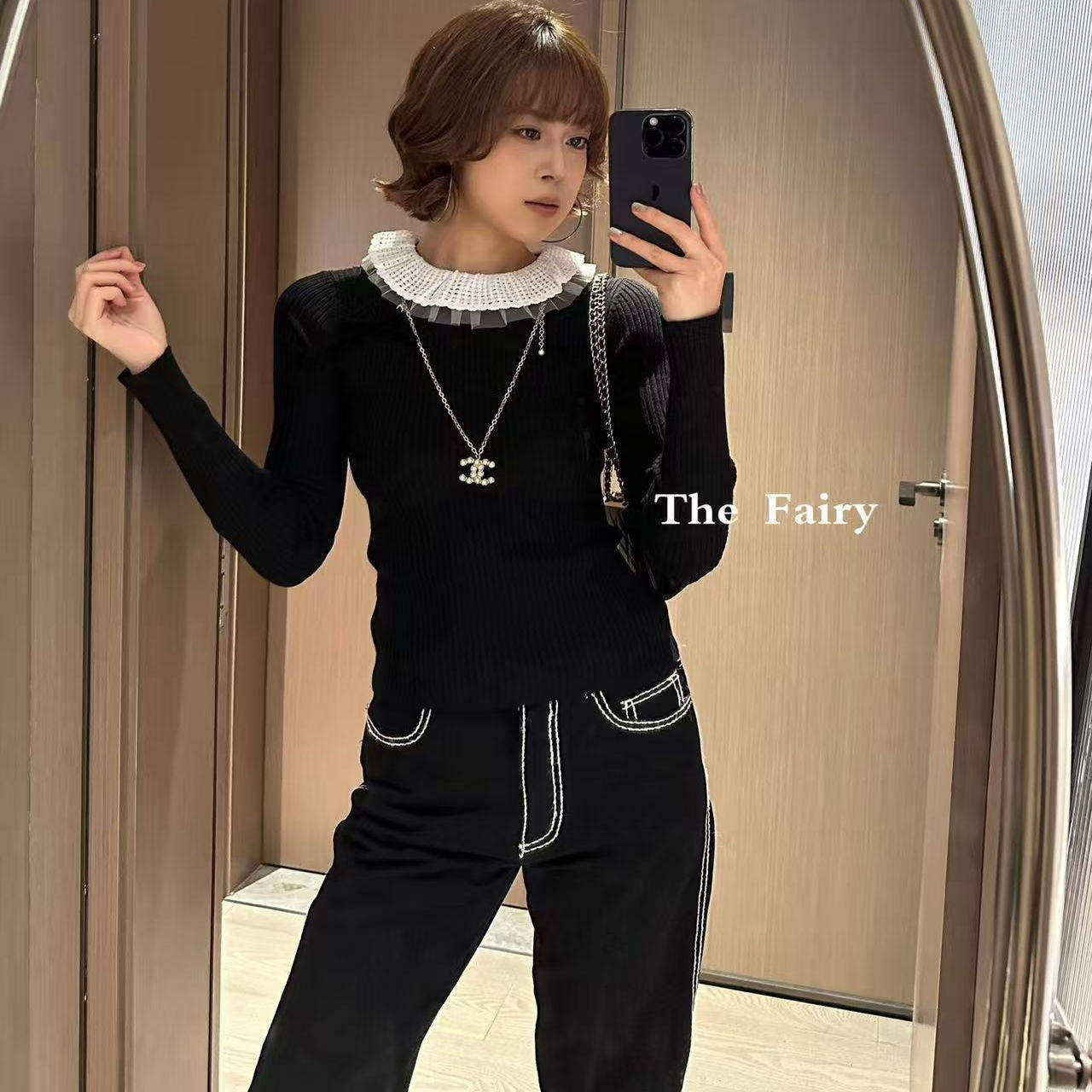 好漂亮好漂亮黑白拼色娃娃领针织打底衫女2025年冬季新款短上衣潮