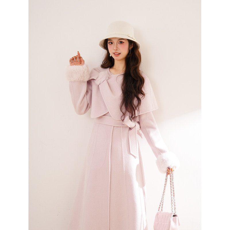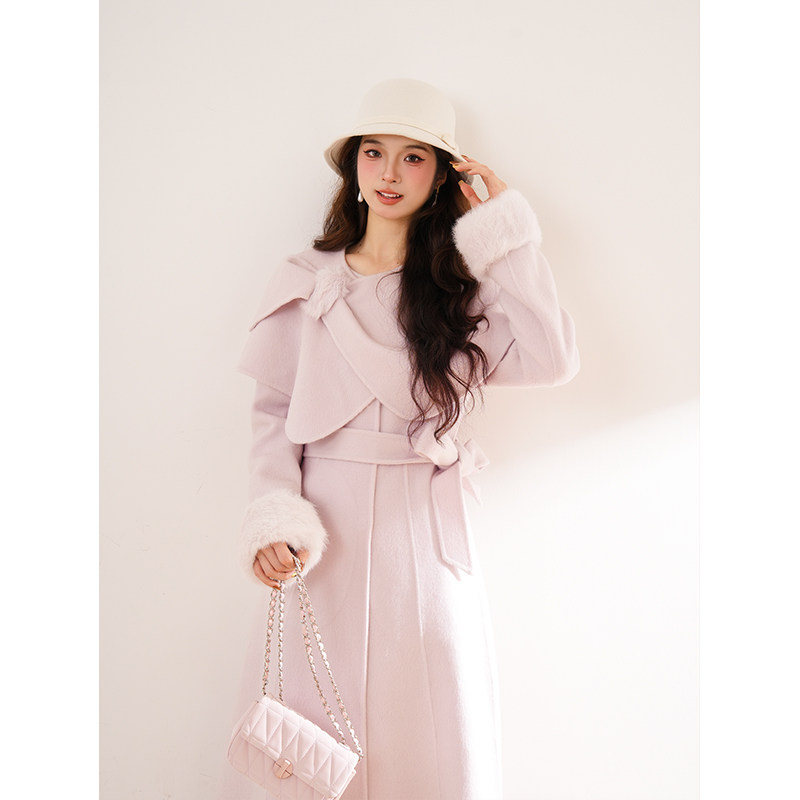首页> 女装> 法式气质高级感毛毛袖香芋紫呢子大衣女2025秋冬新款系带显瘦外套