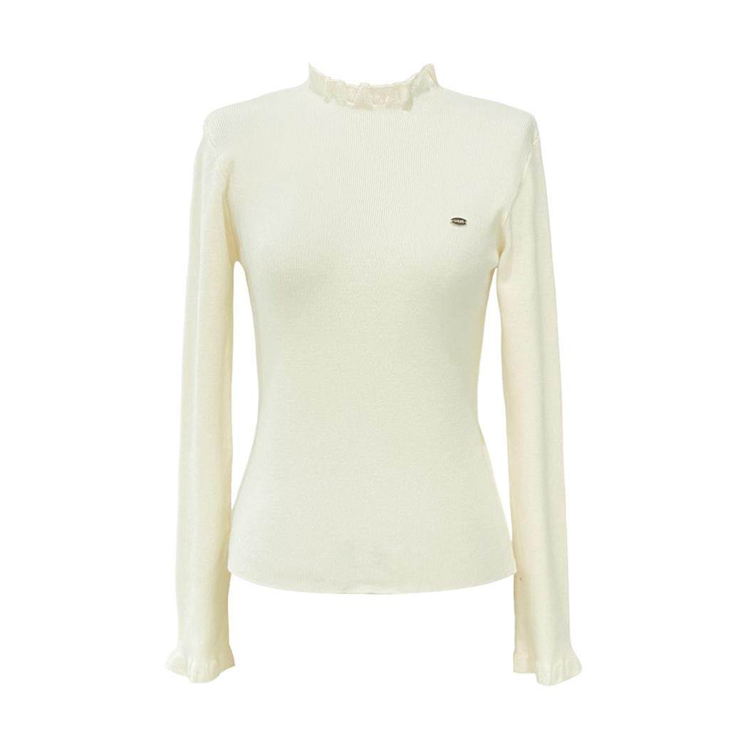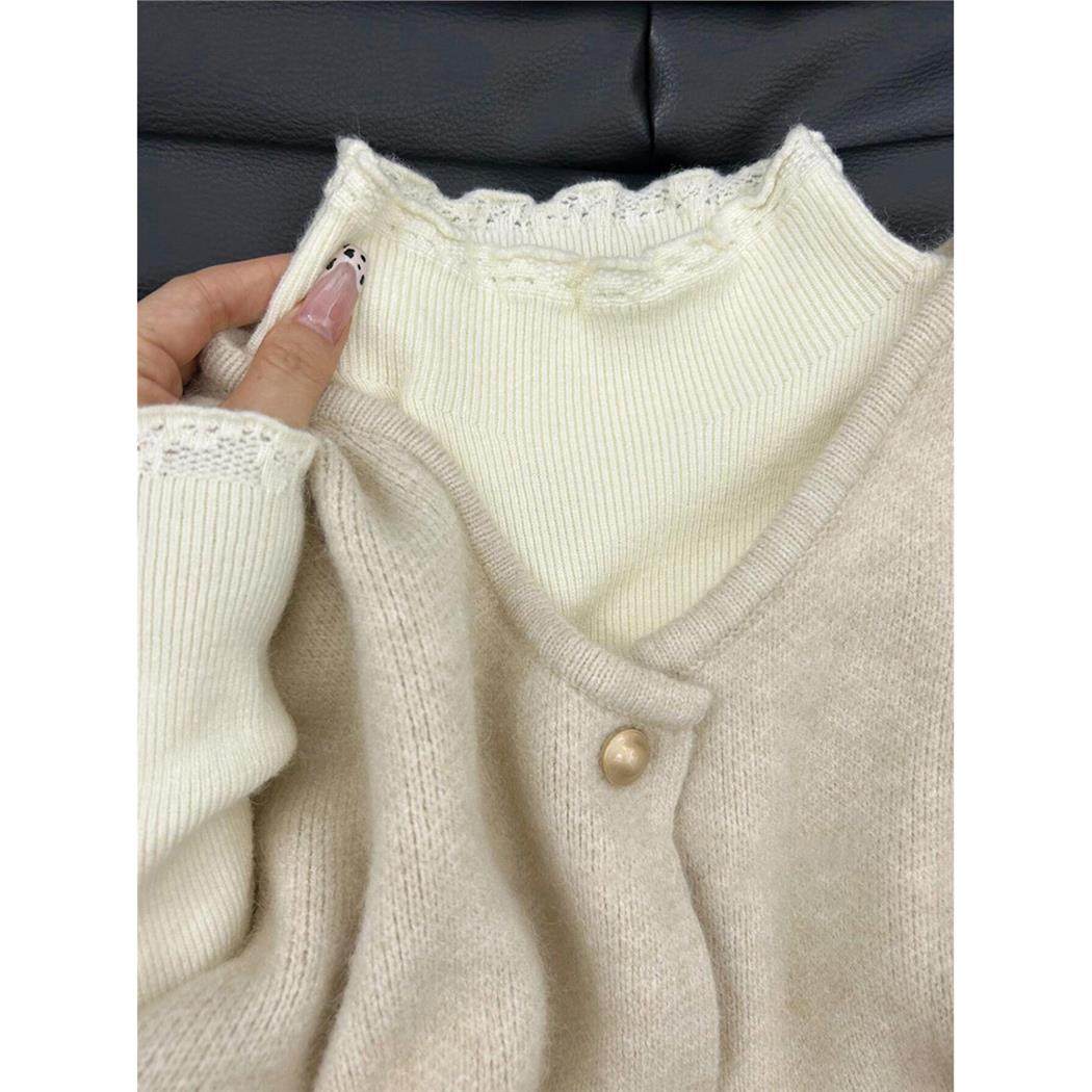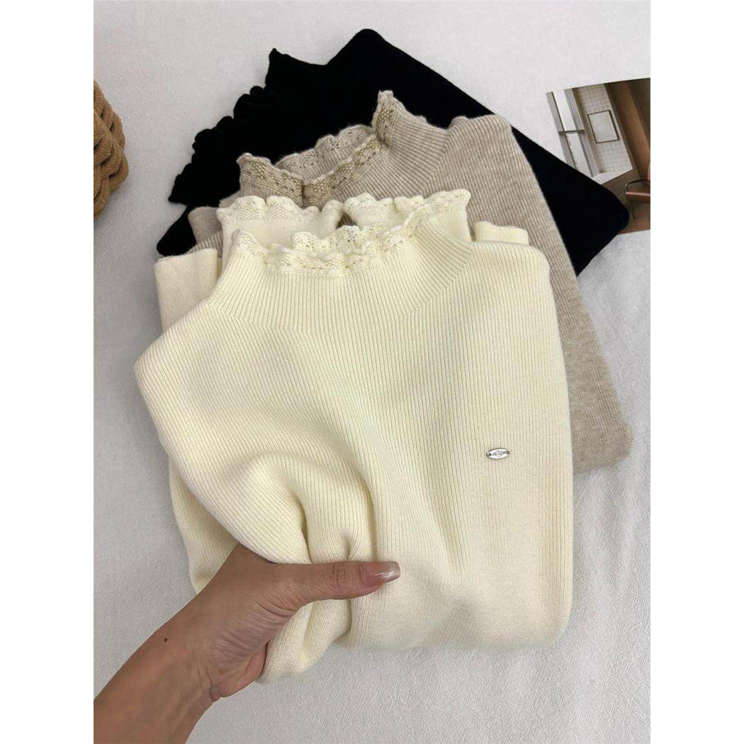 法式秋冬蕾丝边修身打底衫女皮草内搭半高领毛衣气质长袖针织上衣