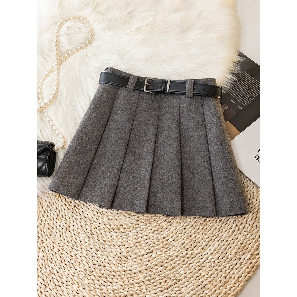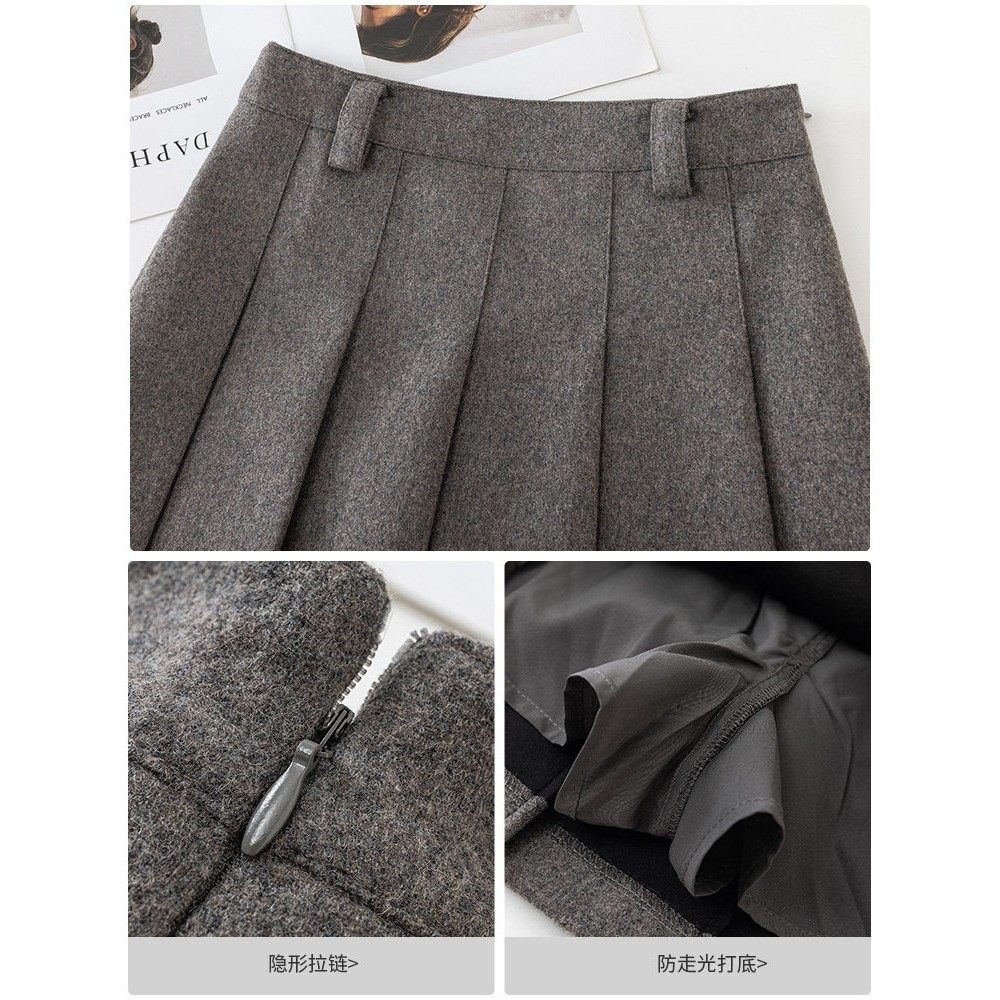 毛呢百褶裙短裙女秋冬季2025新款高腰学院风A字裙显瘦羊毛半身裙