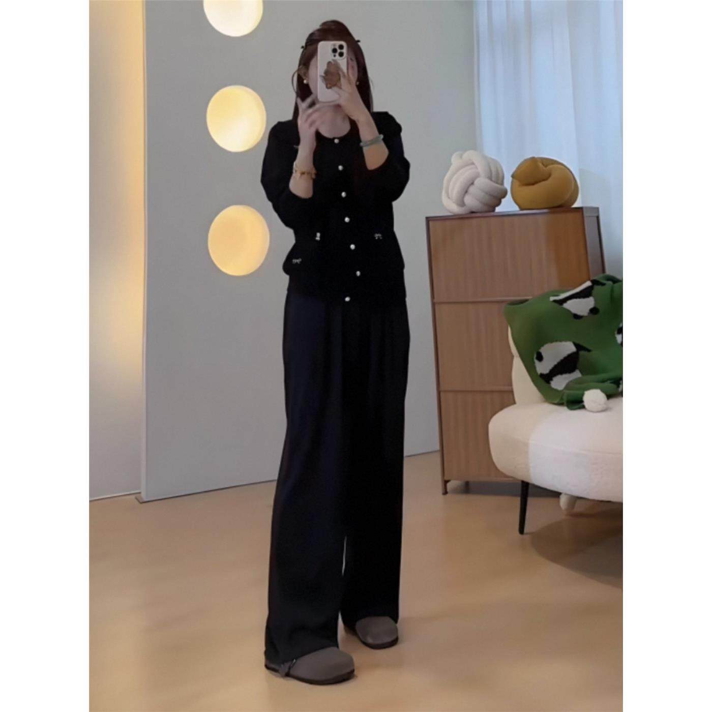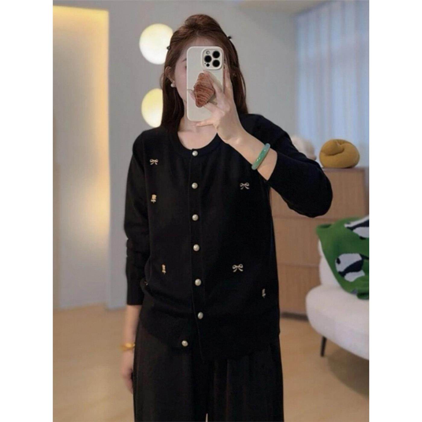 加码蝴蝶结黑色针织品针织品女性秋季服装2025新胖毫米瘦身看肉覆
