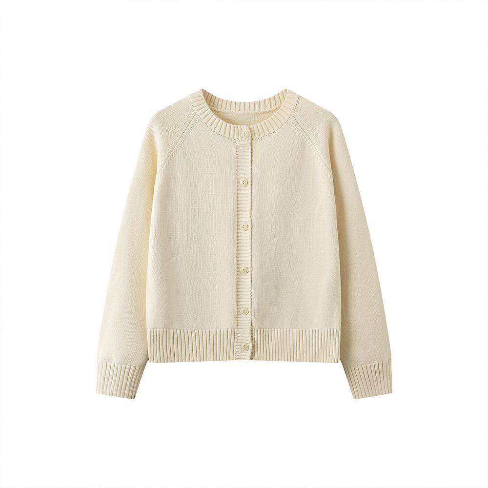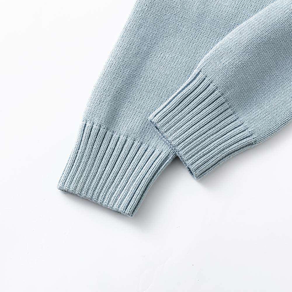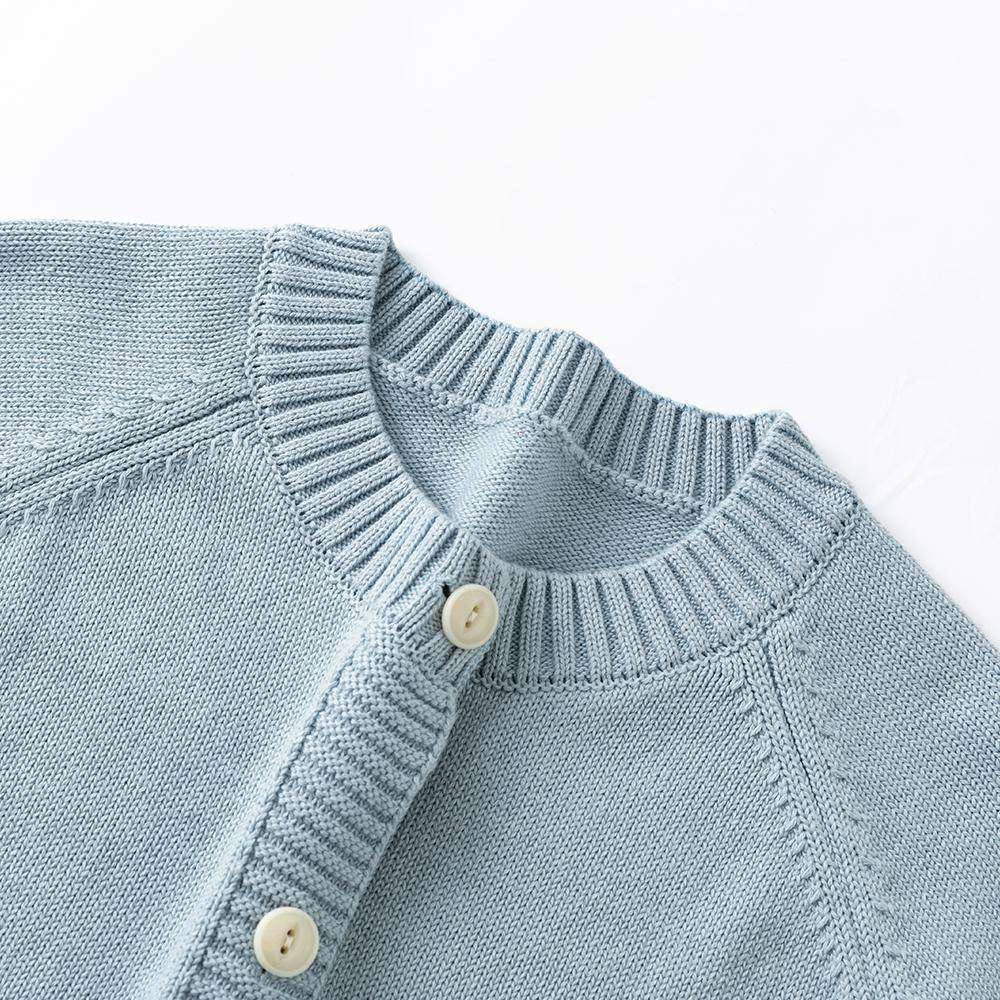 100%全棉浅天蓝针织开衫女外搭不起球纯棉秋装圆领长袖棉线外套