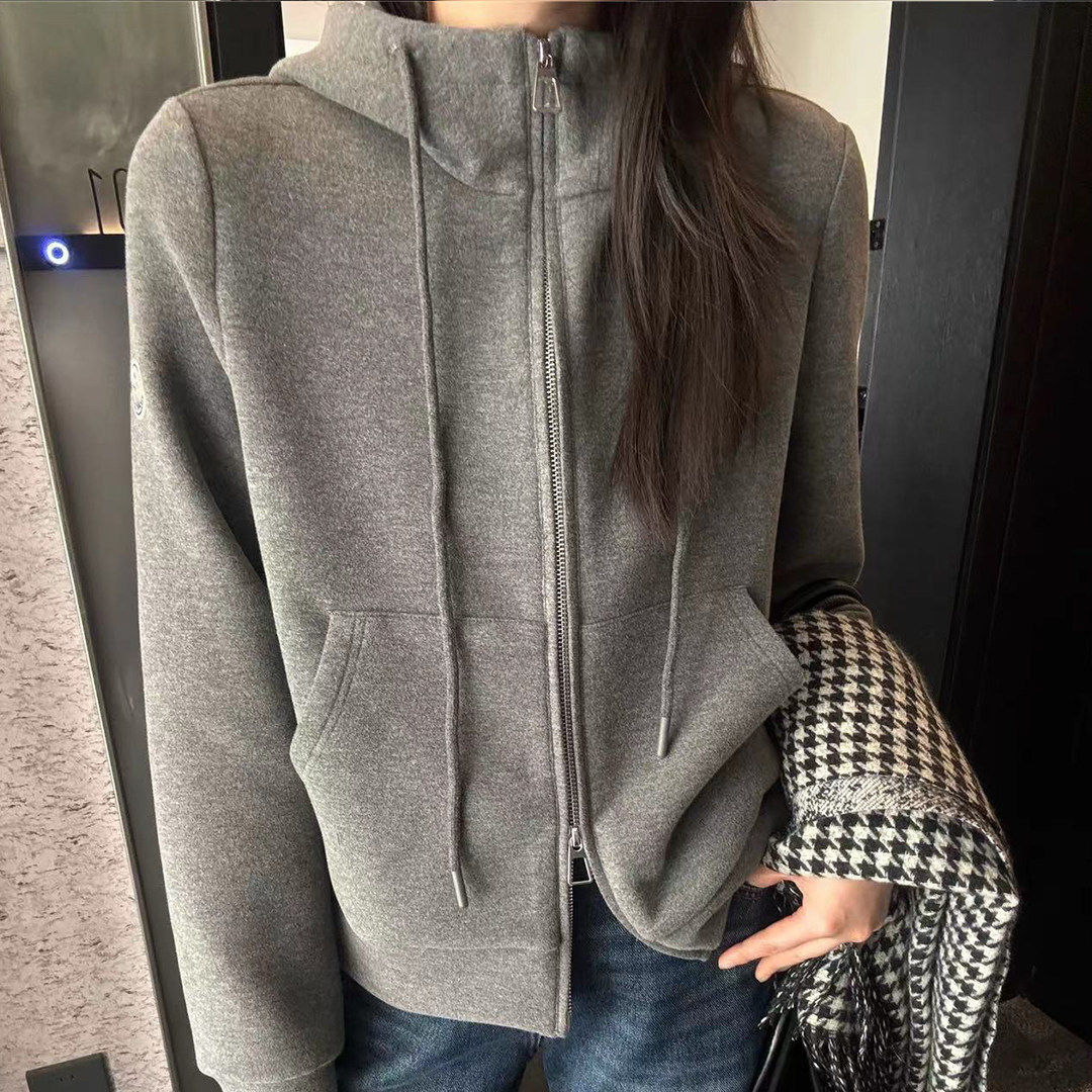 QM25M389百搭连帽圣诞红加绒卫衣开衫女宽松柔软舒适长袖短款外套